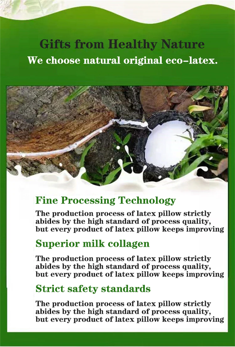 Натуральная и экологически чистая подушка Наш сердечник подушки изготовлен из натурального латекса, полученного из тайских каучуковых деревьев, и изготовлен тщательно разработанным производством Dunlop. Вы даже можете почувствовать запах натурального латекса во время сна. Латекс, естественно, нетоксичный, гипоаллергенный, антипылевой, антибактериальный и плесневой, обеспечивает необычайный естественный уход за кожей.