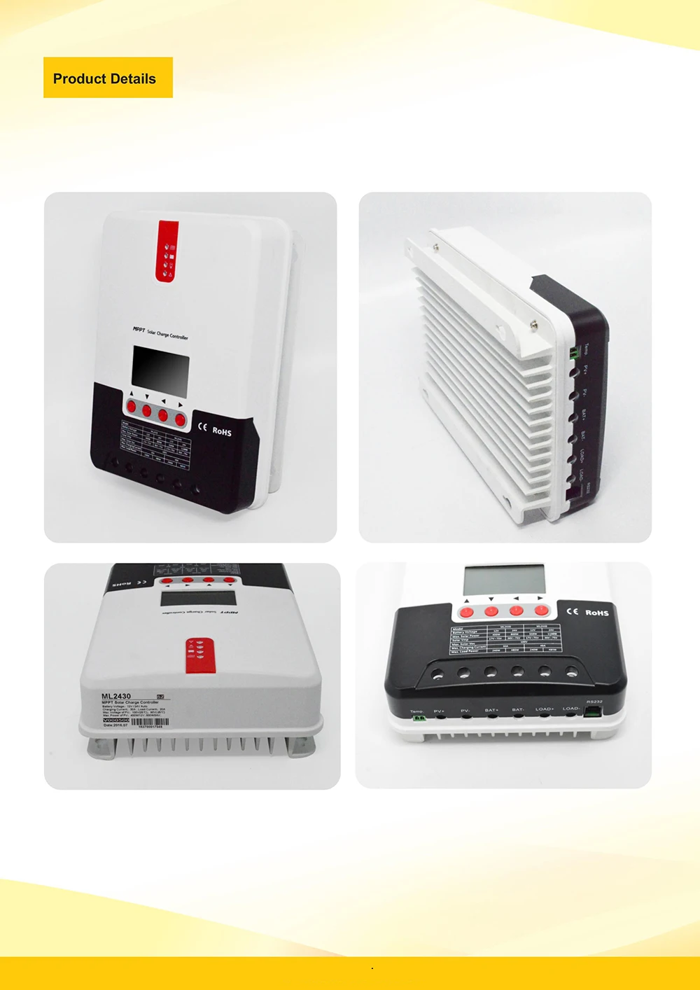 ◆ С передовой технологией двойного пикового или мульти-пикового отслеживания, когда солнечная панель затенена или часть панели выходит из строя, что приводит к нескольким пикам на кривой I-V, контроллер все еще способен точно отслеживать максимальную точку питания. ◆ Встроенный алгоритм отслеживания точки максимальной мощности может значительно повысить эффективность использования энергии фотоэлектрических систем и повысить эффективность зарядки на 15% до 20% по сравнению с обычным методом PWM. ◆ Сочетание нескольких алгоритмов отслеживания позволяет точно отслеживать оптимальную рабочую точку на кривой I-V за очень короткое время. ◆ Продукт имеет оптимальную эффективность отслеживания MPPT до 99.9%. ◆ Передовые технологии цифрового источника питания повышают эффективность преобразования энергии в цепи до 98%. ◆ Опции программы зарядки доступны для различных типов батарей, включая гелевые батареи, герметичные аккумуляторы, открытые батареи, литиевые батареи и т. д. ◆ Контроллер оснащен ограниченным режимом зарядки. Когда мощность солнечной панели превышает определенный уровень, а зарядный ток больше номинального тока, контроллер автоматически снизит мощность зарядки и доведет зарядный ток до номинального уровня. ◆ Поддерживается мгновенный Запуск большого тока емкостных нагрузок. ◆ Поддерживается автоматическое распознавание напряжения батареи. ◆ Светодиодный индикатор неисправности и ЖК-экран, которые могут отображать информацию о ненормальности, помогают пользователям быстро идентифицировать ошибки системы. ◆ Доступна функция хранения данных в истории, и данные могут храниться до года. ◆ Контроллер оснащен ЖК-экраном, с помощью которого пользователи могут не только проверять операционные данные и состояние устройства, но и изменять параметры контроллера. ◆ Контроллер поддерживает стандартный протокол Modbus, удовлетворяя потребности в связи различных случаев.