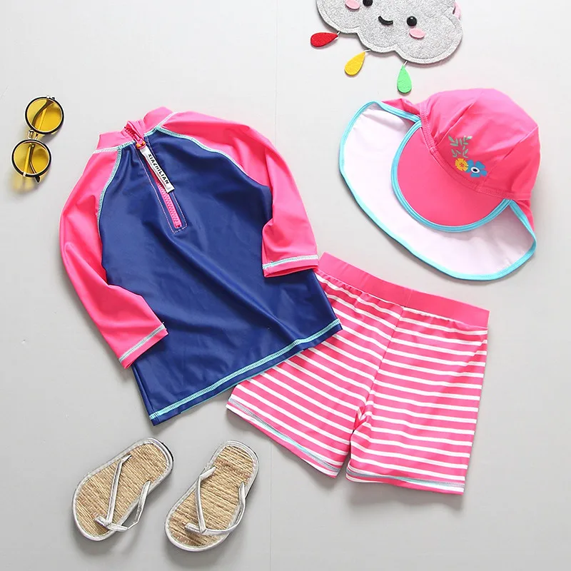 От 2 до 9 лет детский купальник для девочек, детский купальник с единорогом, пляжный купальный костюм для девочек 3 шт., купальник для маленьких девочек с шапочкой для детей