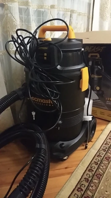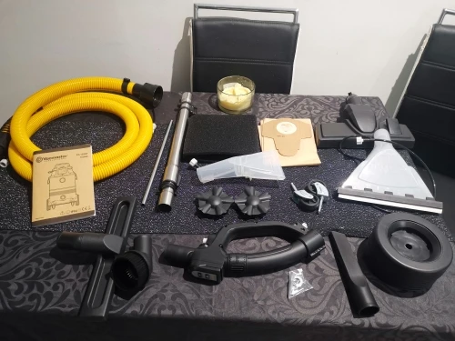 Пылесос классный, большой комплект насадок, длинный шланг и кабель, хорошо пылесосит, хорошо справился с мойкой дивана, отличная фильтрация (мешок-фильтр двигателя-фильтр на выходе). Из минусов: нет никаких крепежей, держателей для щеток на самом пылесосе, труба стальная в месте удлинения люфтит и пропускает воздух. В целом доволен, взял для ремонта и чистки мягкой мебели