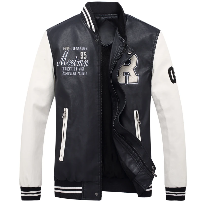 Новинка, зимние Флисовые Куртки из искусственной кожи, мужские Модные Мотоциклетные Куртки для пилота, колледжа, бейсбольная куртка, мужские повседневные Куртки из искусственной кожи с вышивкой