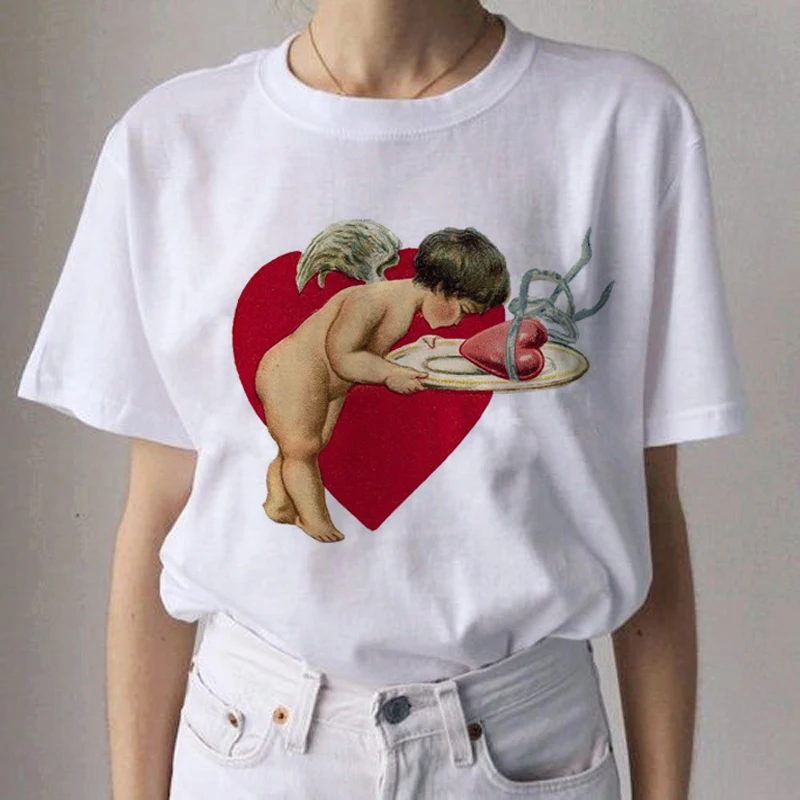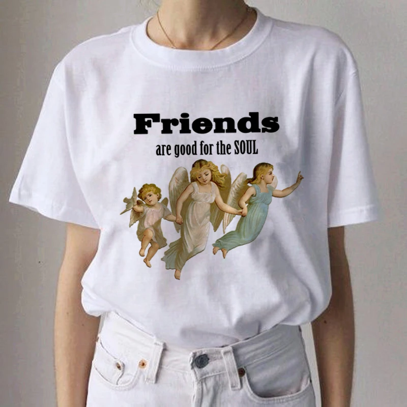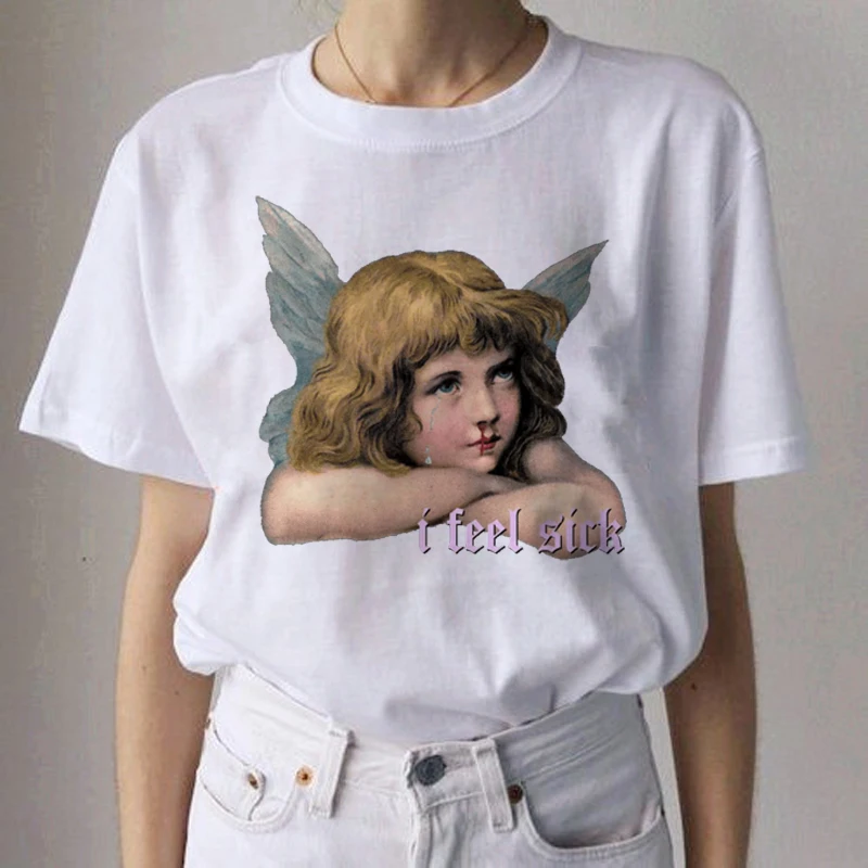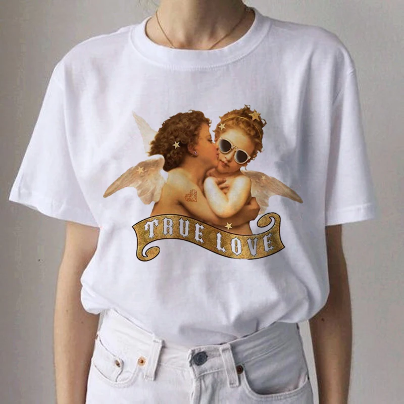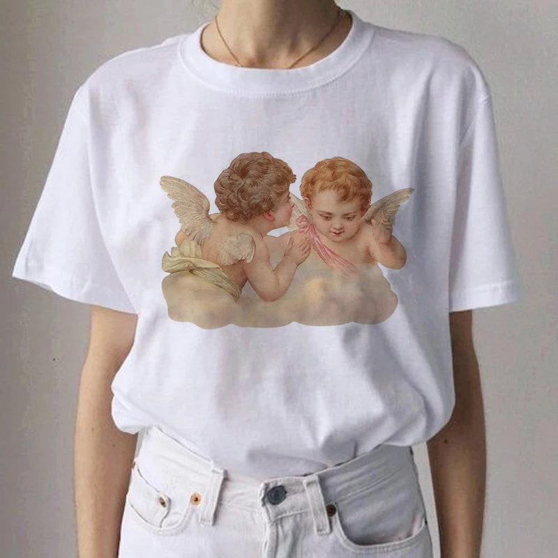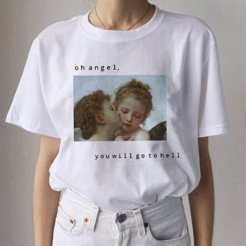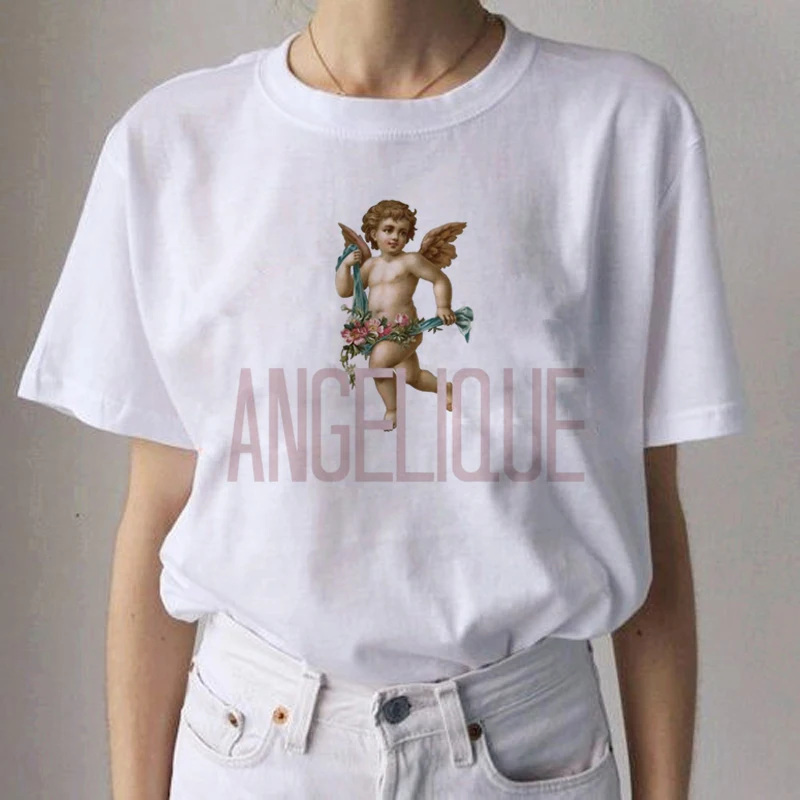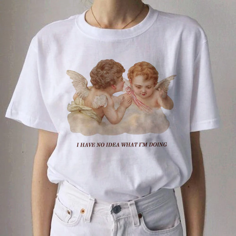 Футболка женская в стиле Харадзюку, милый смешной топ с изображением ангела в эстетике гранж, в стиле 90-х, Ullzang