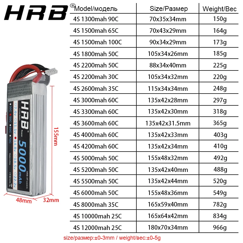 Аккумулятор HRB 6S XT60 22,2220018002600330040005000600010000120001...