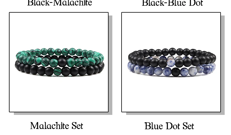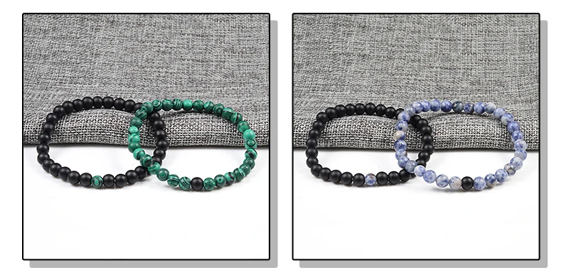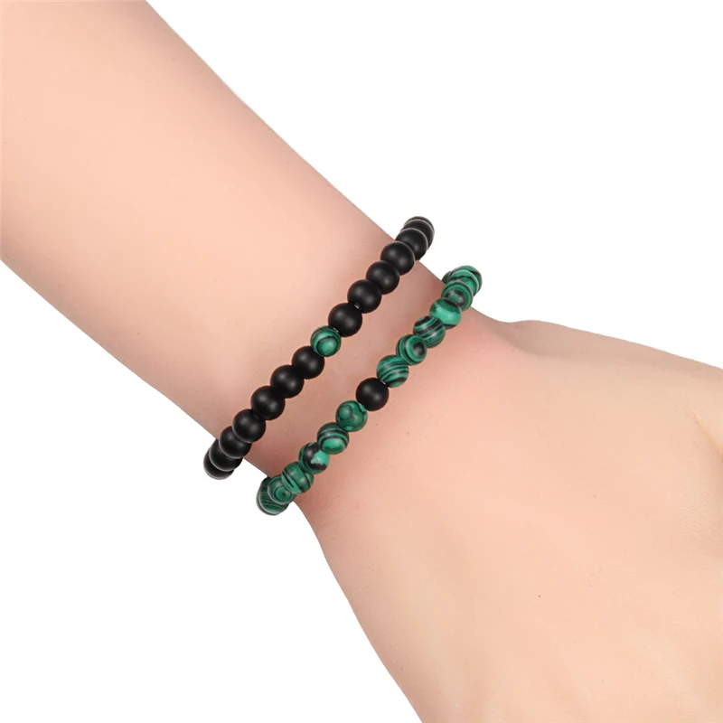 Винтажные браслеты и Обручи из черного натурального камня, мужские браслеты с голубыми бусинами из малахата, браслет с расстоянием для пар, амулетные ювелирные изделия, браслеты