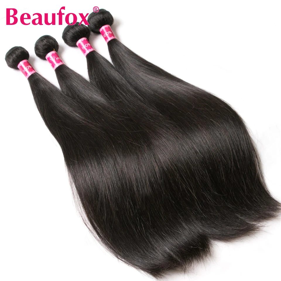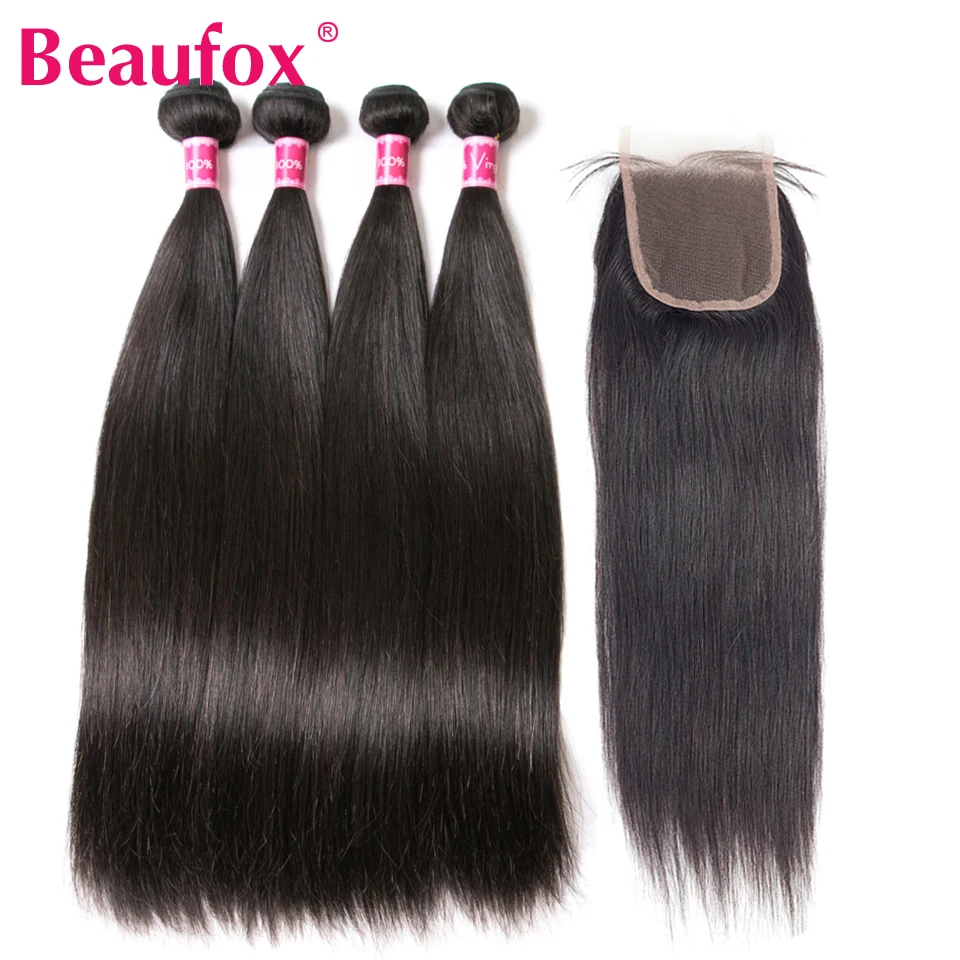 Beaufox прямые пряди волос с закрытием бразильские волосы плетение пряди с закрытием Remy человеческие волосы 4 пряди с закрытием