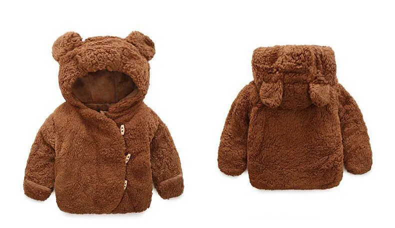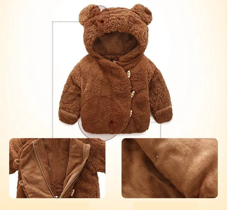 Детское флисовое пальто с капюшоном, с мультяшным медведем