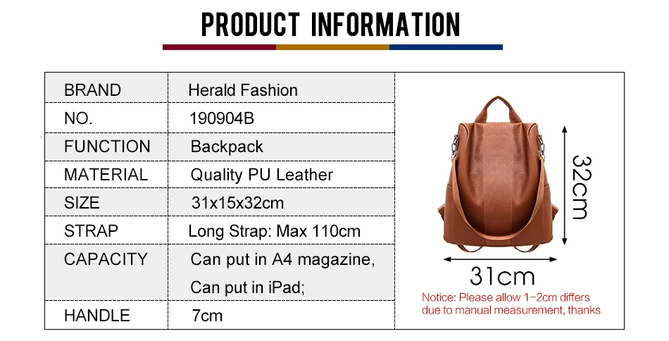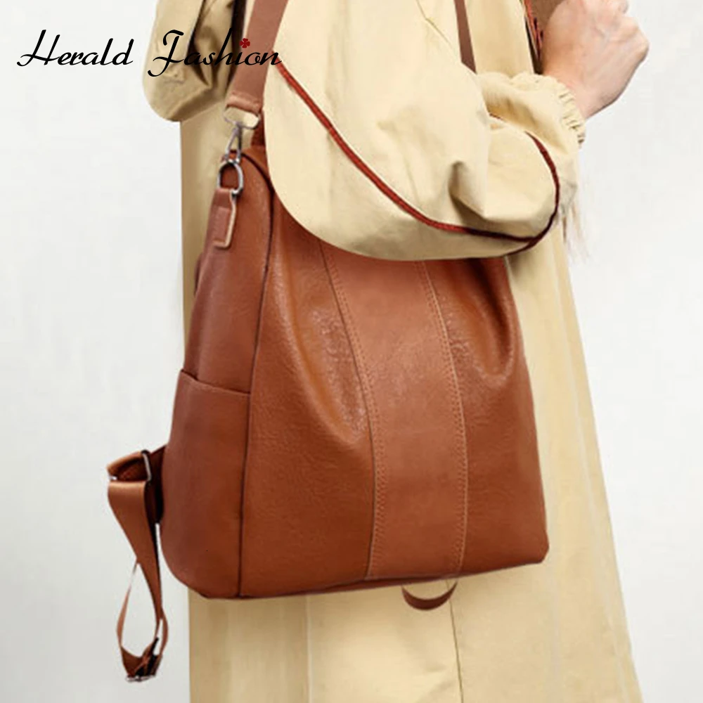 Herald модный рюкзак с защитой от кражи, классический однотонный рюкзак из искусственной кожи, модная сумка на плечо, Повседневная сумка на плечо для девочек-подростков