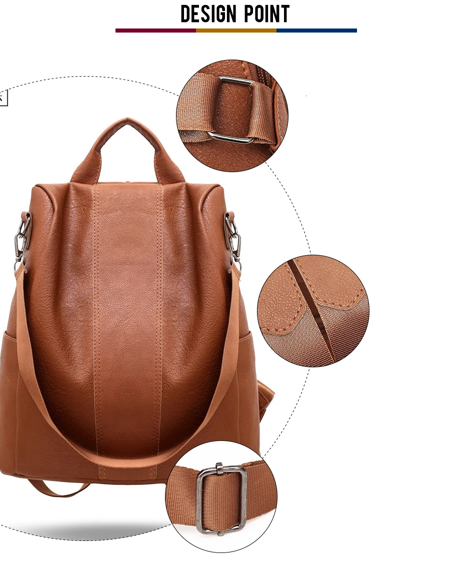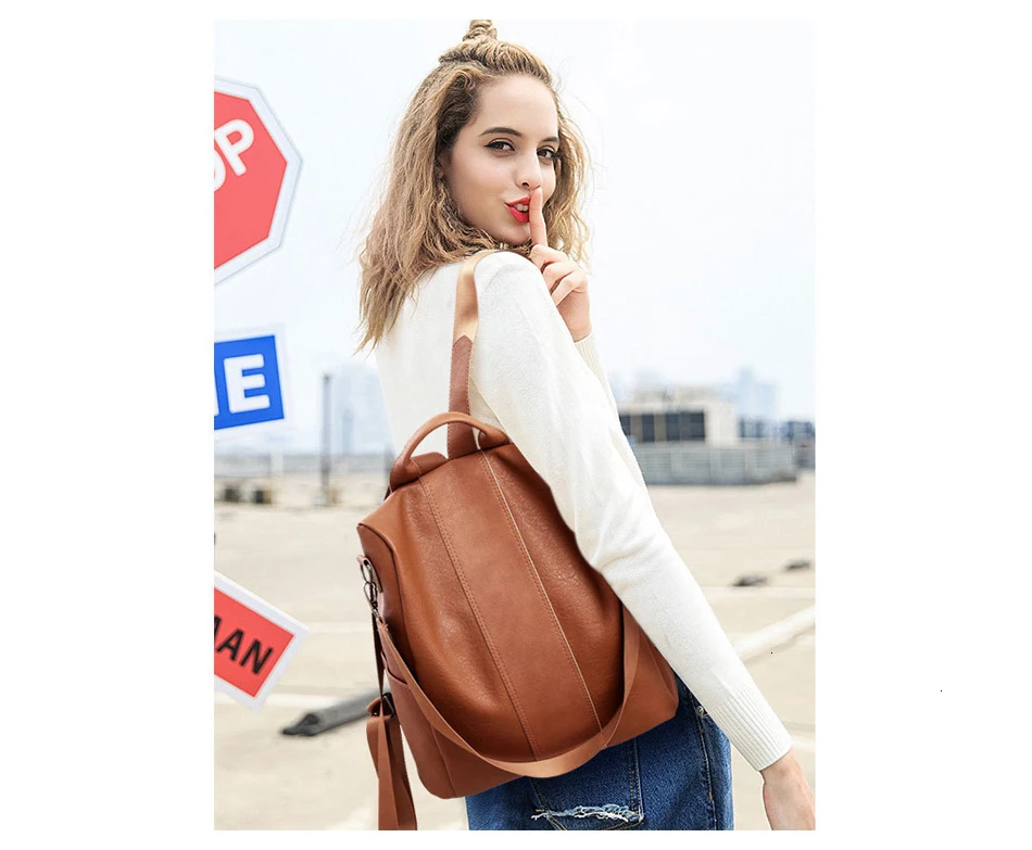 Рюкзак женский кожаный, с защитой от кражи, винтажный, 2021