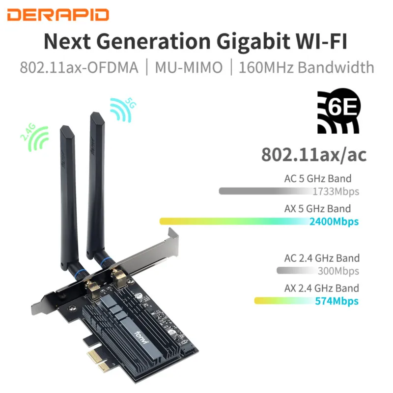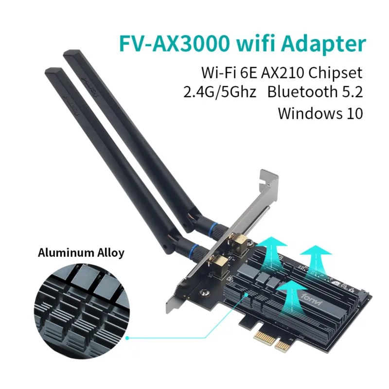 Двухдиапазонная беспроводная сетевая карта fenvi, 3000 Мбитс, Wi-Fi 6e, Intel AX210, Wi-Fi адаптер AX210NGW, 802, 11acax, Bluetooth 5,2, для настольных ПК