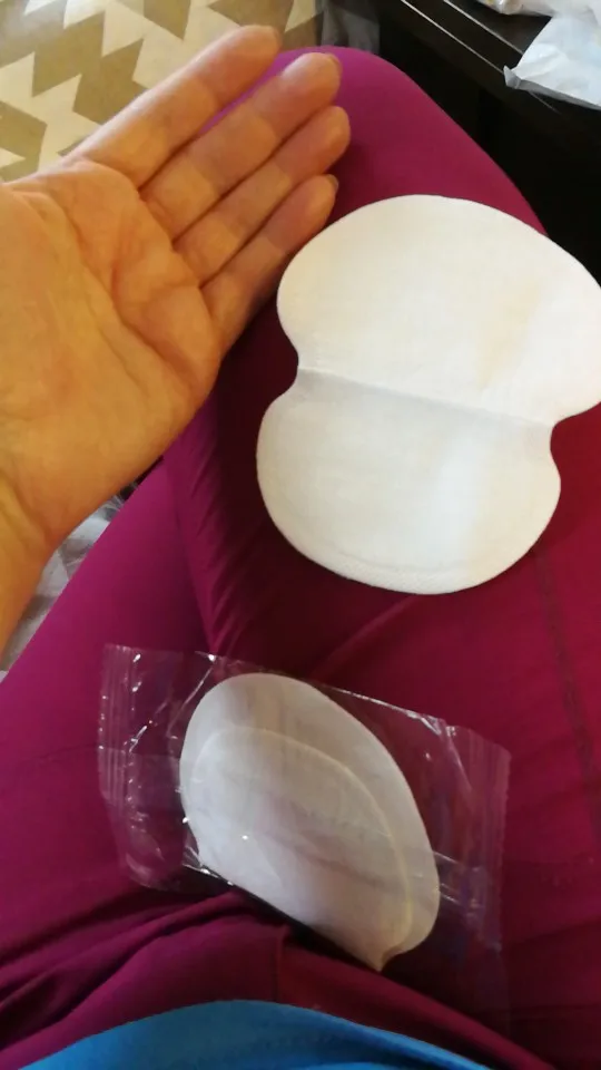 Советы по использованию: Снять клейкий лист с прокладки Вставьте колодку внутрь вашей одежды (широкую сторону колодки следует приклеить на внутреннюю сторону рукава; Узкую сторону колодки следует приклеить на внешнюю часть рукава). После использования Снимите прокладку Примечание: этот коврик можно отрезать самостоятельно, чтобы соответствовать вашему размеру.