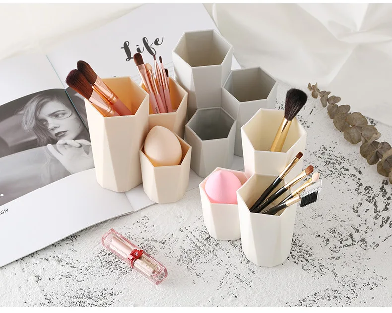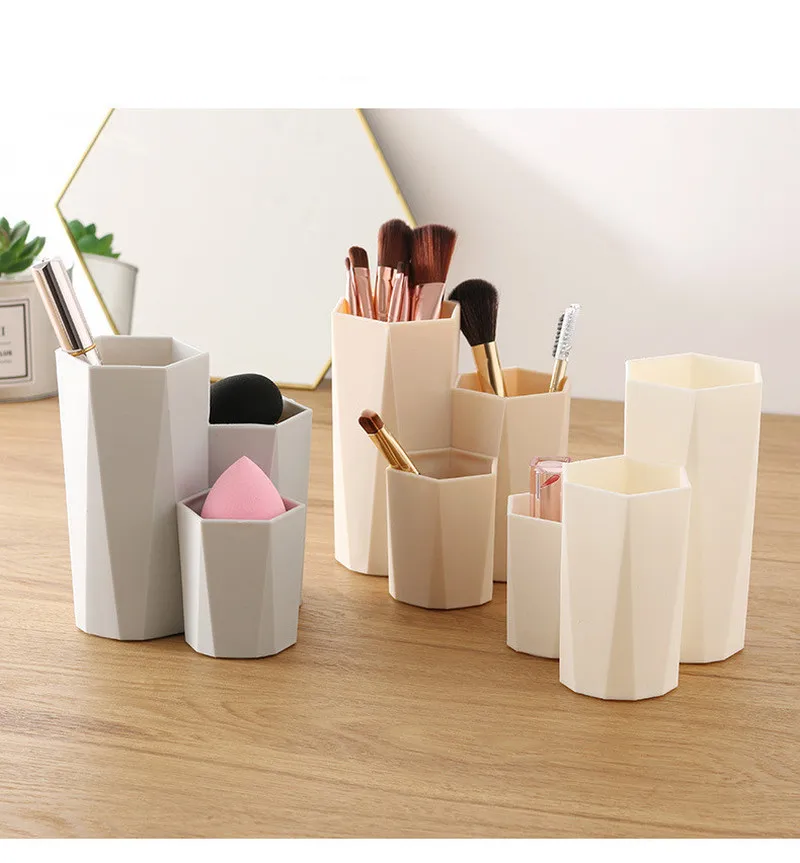 Контейнер для хранения косметических кистей, 3 отделения, органайзер для макияжа, лака для ногтей, инструменты для макияжа, держатель-стеллаж для ручек, Настольный Органайзер
