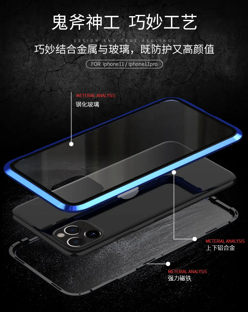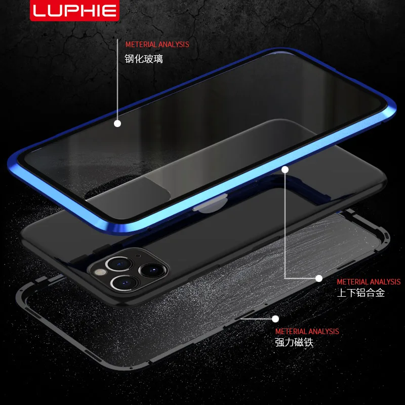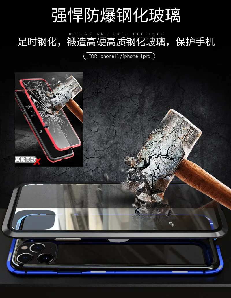 Чехол для iPhone 11 Pro Max, металлическая рамка, магнитное двойное закаленное стекло, ударопрочный чехол 360 для iPhone 11 Pro Max SE 2022, чехол