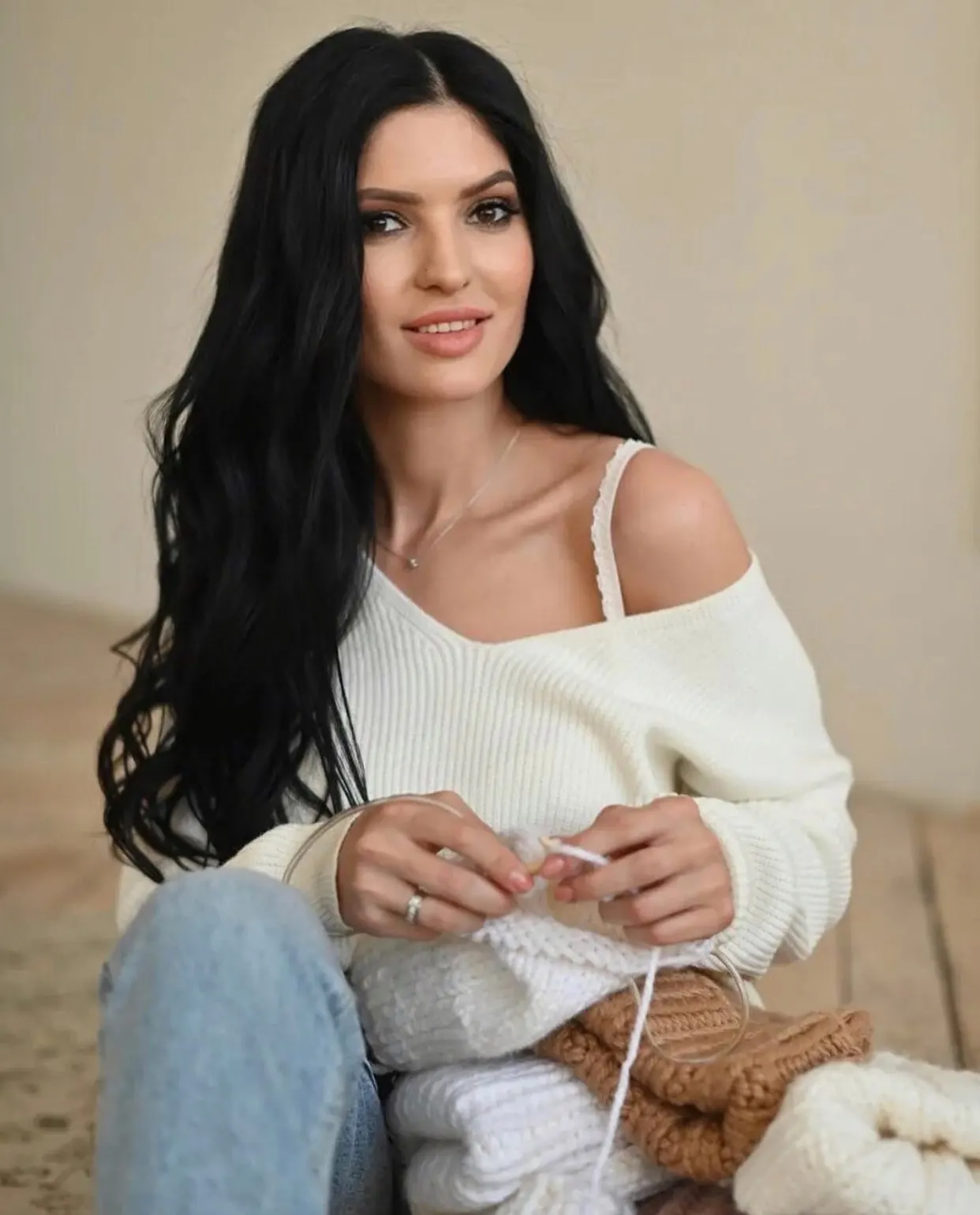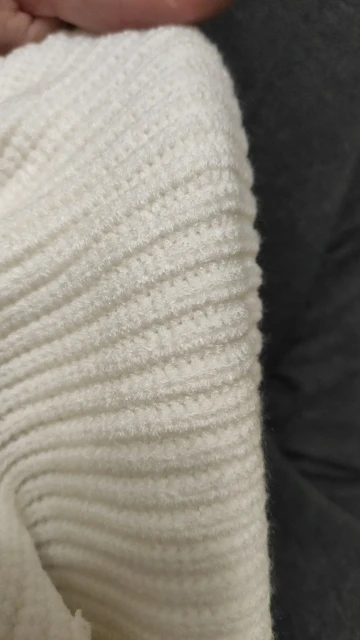 Кофта оч мягкая, приятная, но цвет не кипильно белый, скорее молочный, небольшой дефект вязки: 2 петли наружу узлами, узлы не очень крепкие. Стала их заправлять вовнутрь, показалось что вот вот разойдутся. В целом за 900р.норм. На параметры 110/80/106 на размер меньше можно было бы заказать, сидит как овер.