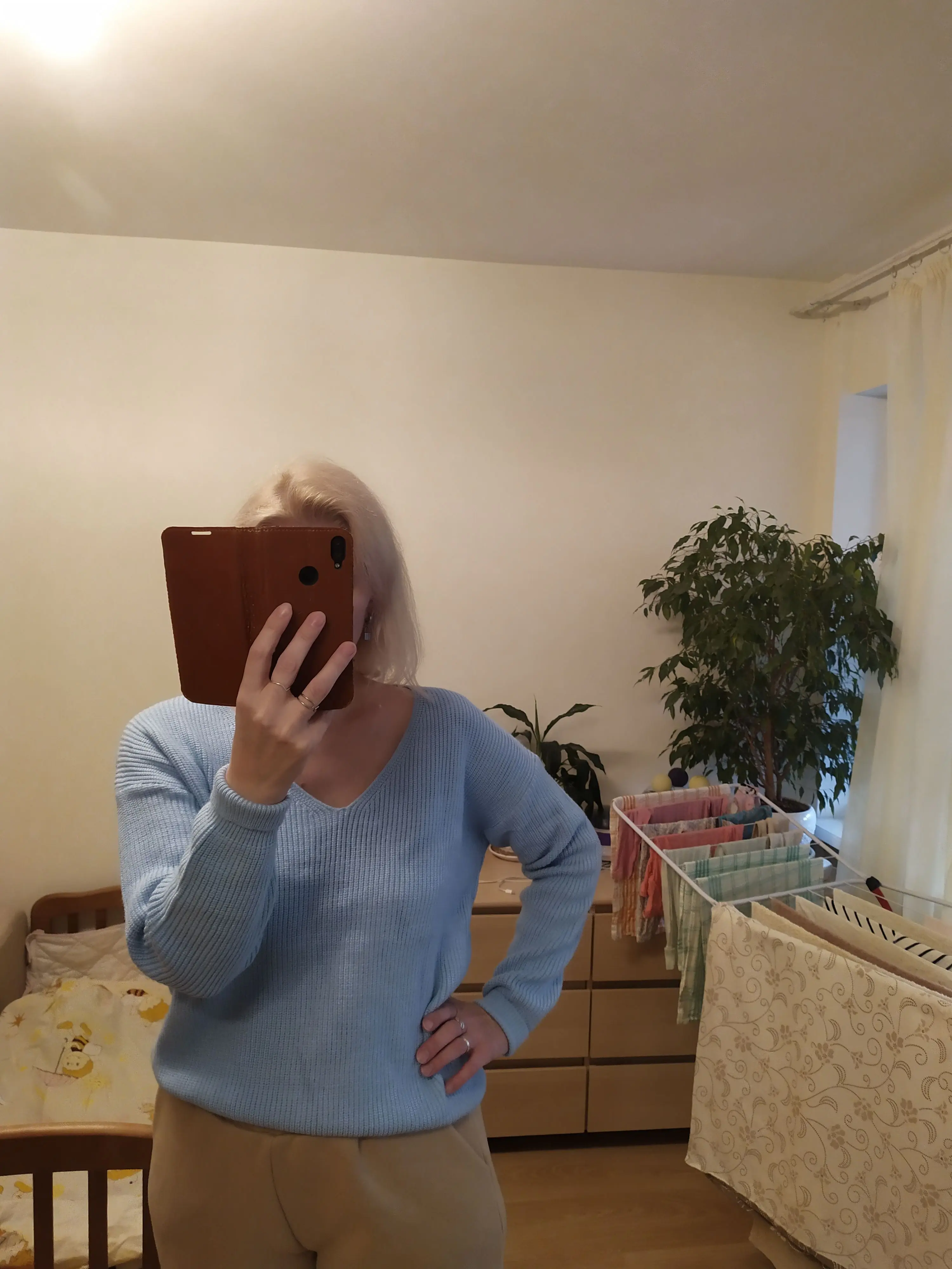 Свитер супер! Мягкий, красивый, цвет как на картинке небесно-голубой. Очень понравился.