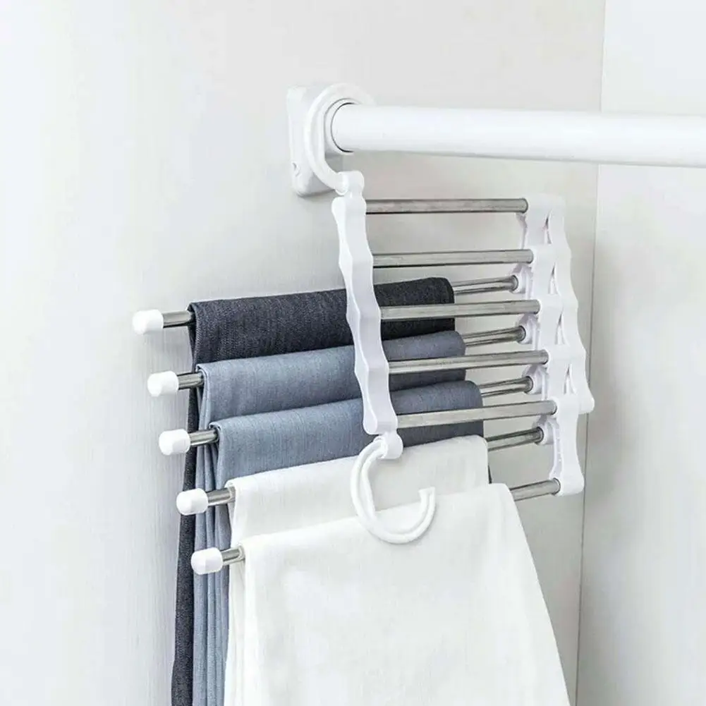 Стальная многофункциональная выдвижная вешалка для брюк, многослойная подвесная вешалка для хранения брюк, пять в одном