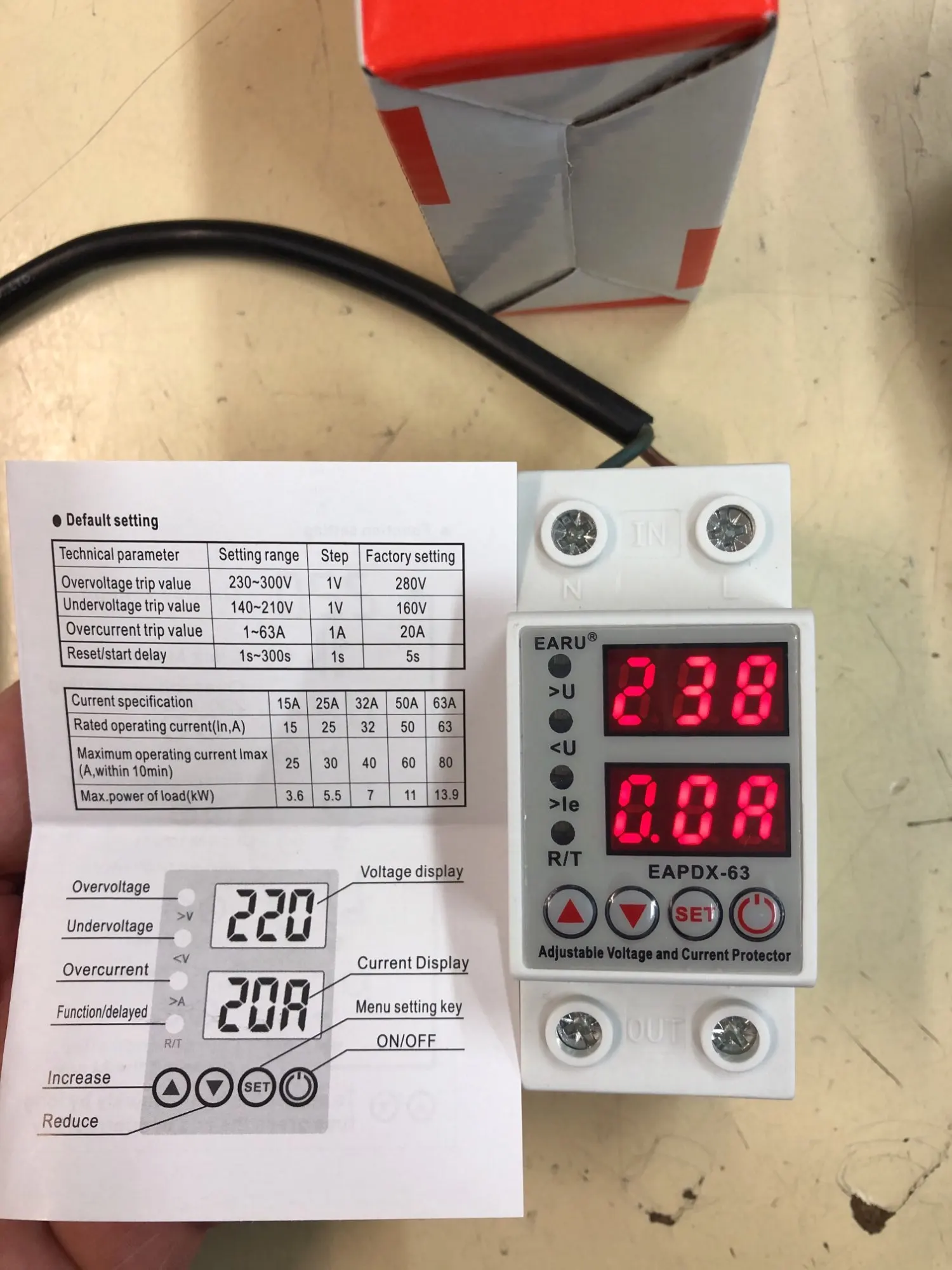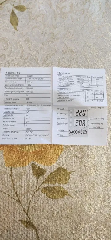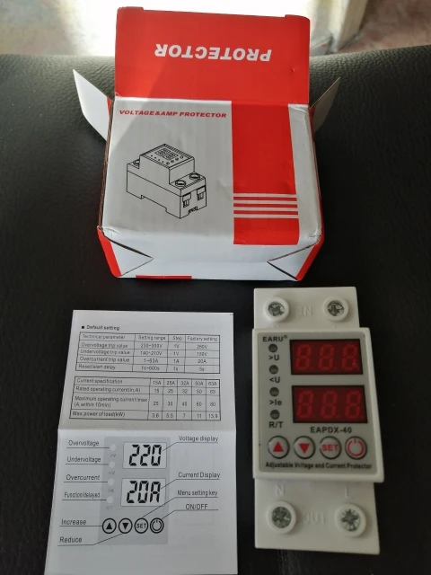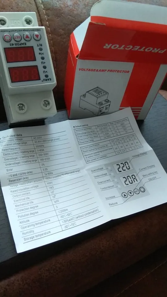 Доставили быстро. В работе ещё не проверял. Подключал только напругу. Напряжение показывает. С продавцом не общался. Заводские настройки реле указаны на коробке: Верх -280В, Низ -180В, отключение по току 20А.