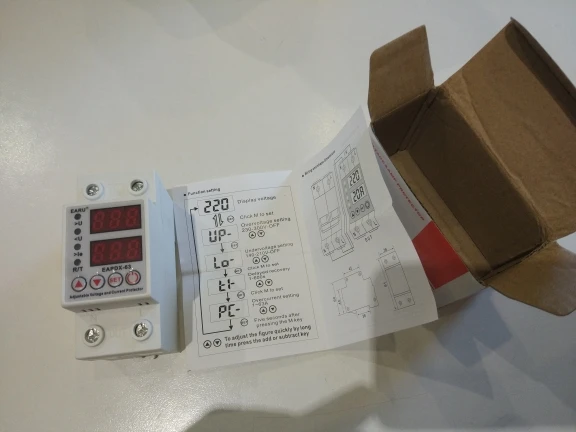 Пришло быстро. Пока не ставил на латре проверил пороги 170в вырубает, 270в вырубает 30с задержки. Ток 40А. Управление простое. Единственное градацию по показаниям сверю у себя в кипе, чтоб знать на сколько гуляем соответсвенно поднять либо опустить показания на откл. Устройства. Всем удачи, поставлю напишу еще