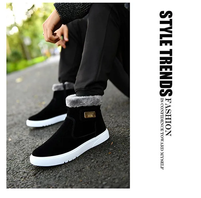 2019 г. Зимние Теплые ботильоны мужская повседневная обувь с высоким берцем хлопковые плюшевые зимние ботинки Новое поступление, мягкие мужские лоферы из флока без застежки