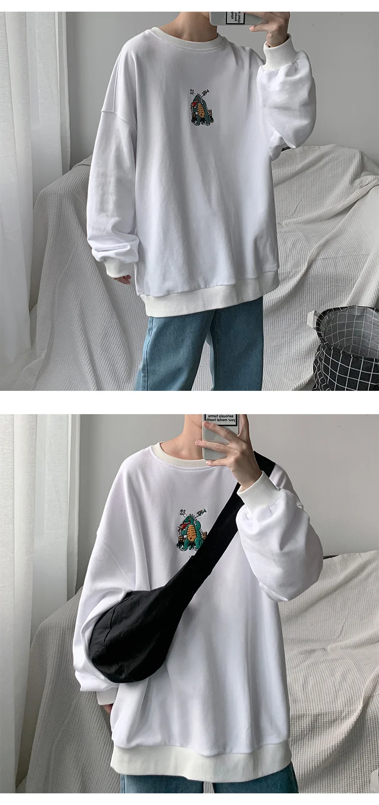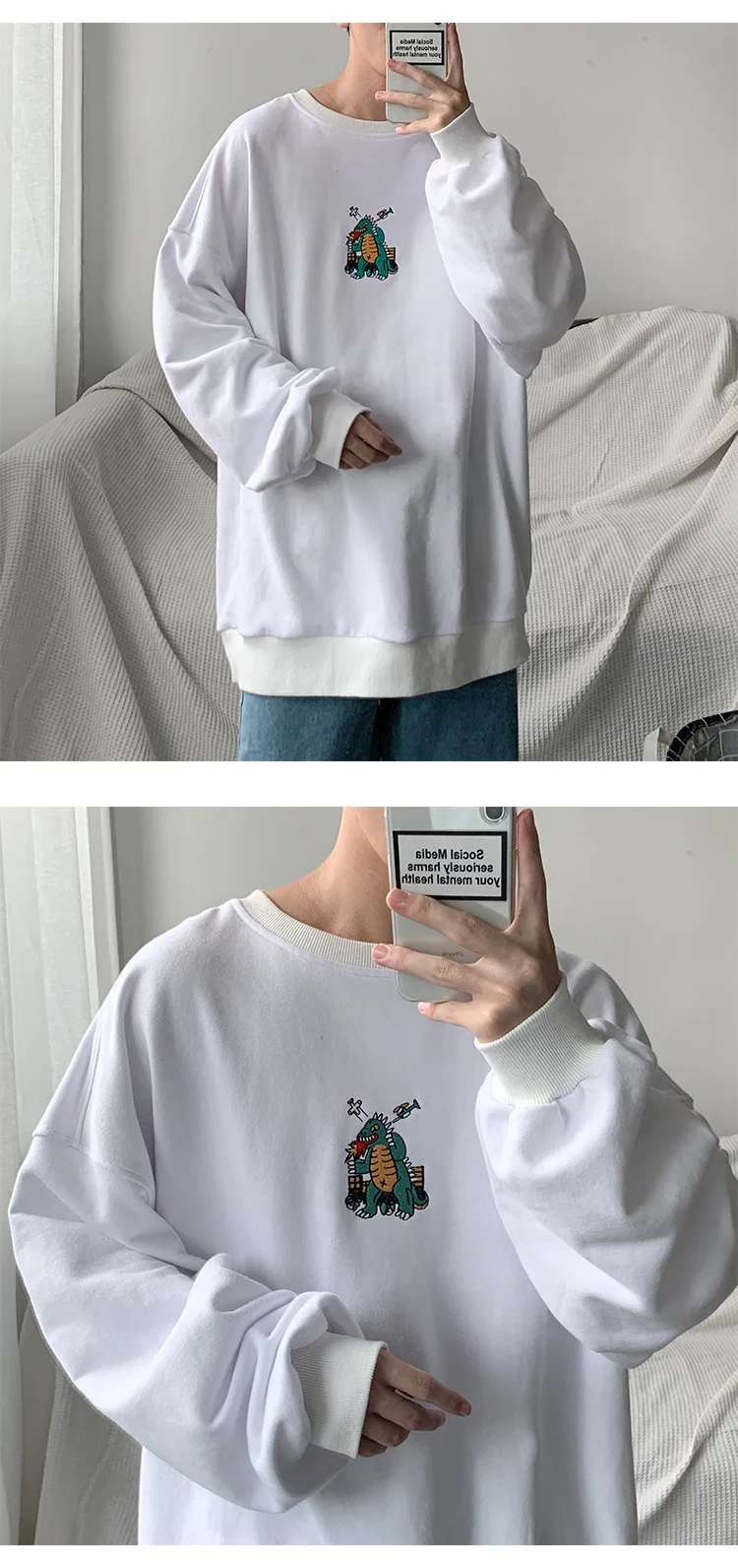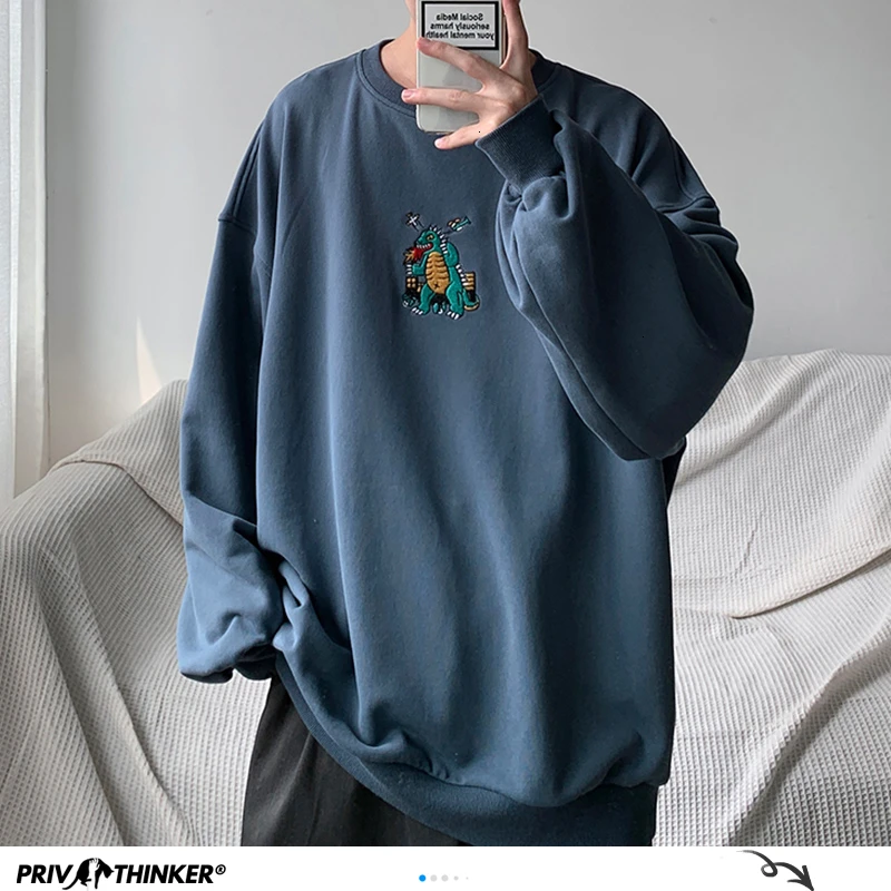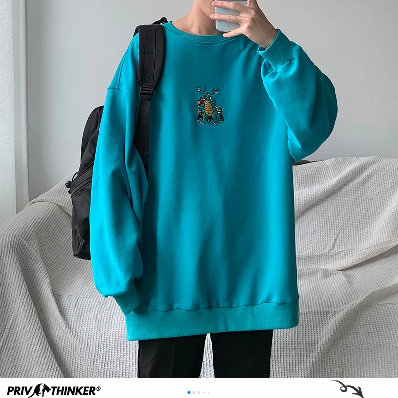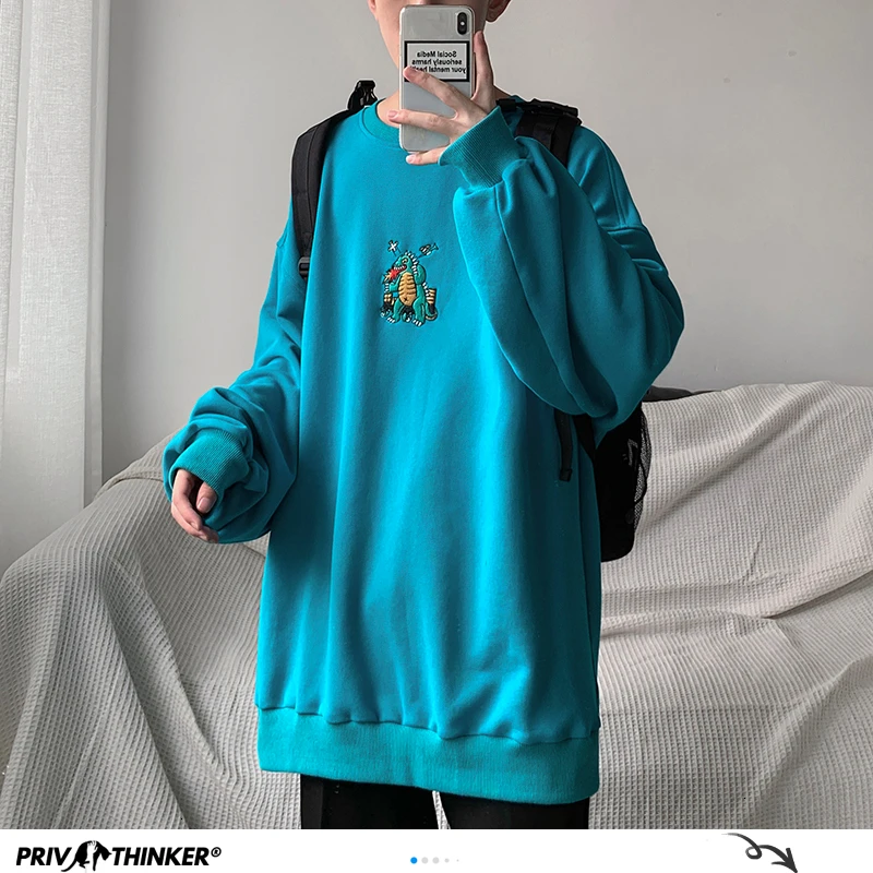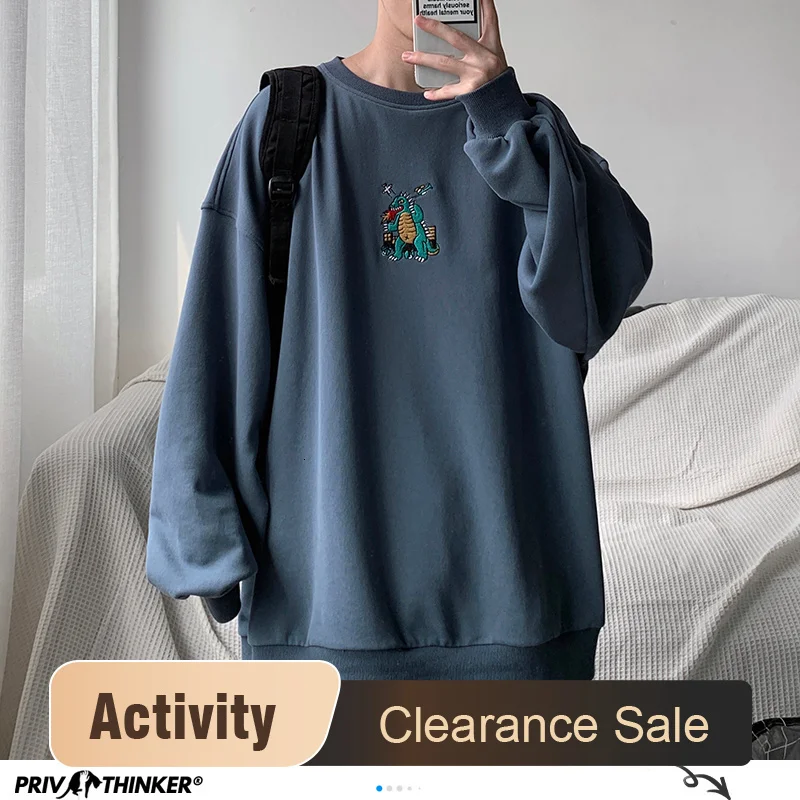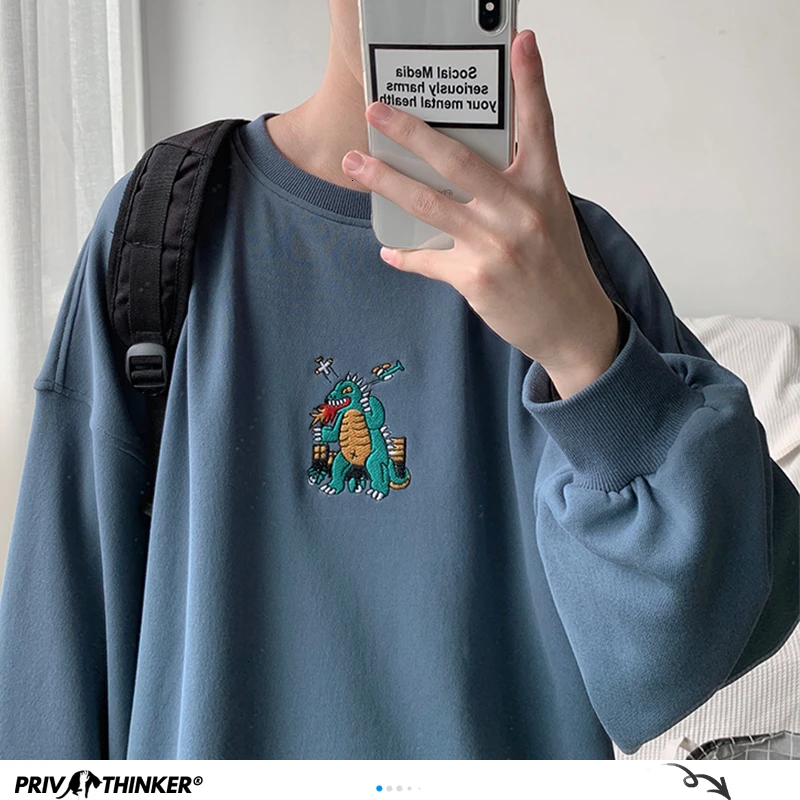 Privathinker, мужские осенние пуловеры с вышивкой динозавра, свитшоты, мужские толстовки с круглым вырезом, 3 цвета, Мужская модная Корейская толстовка