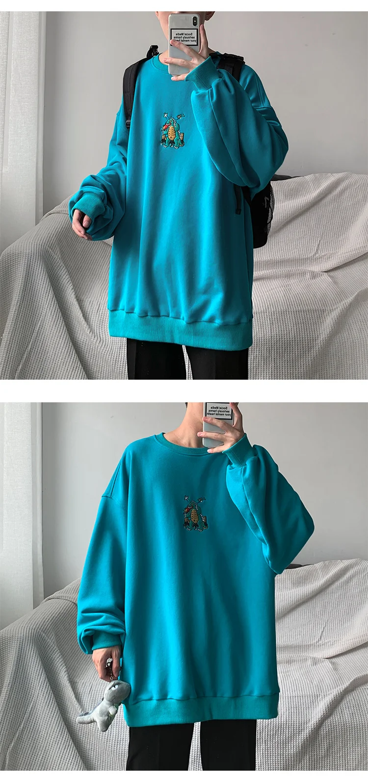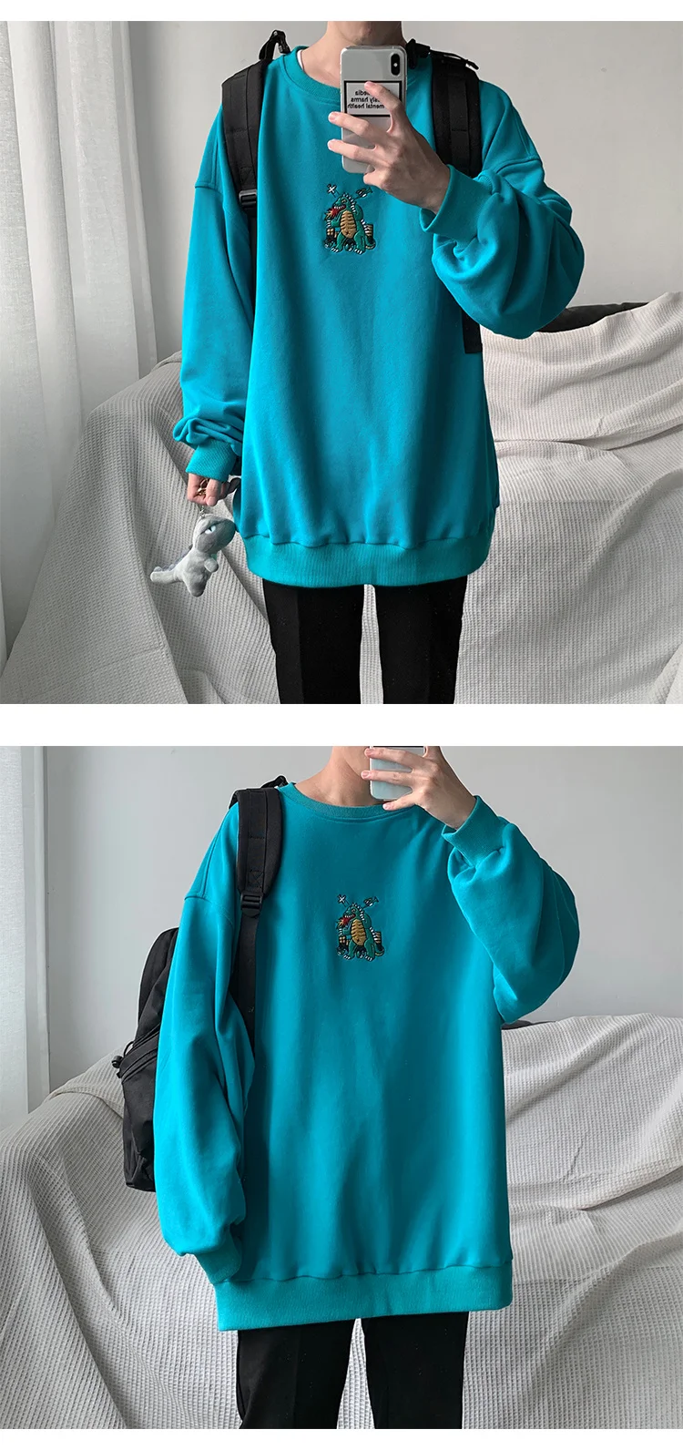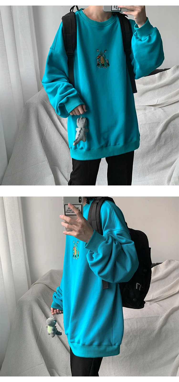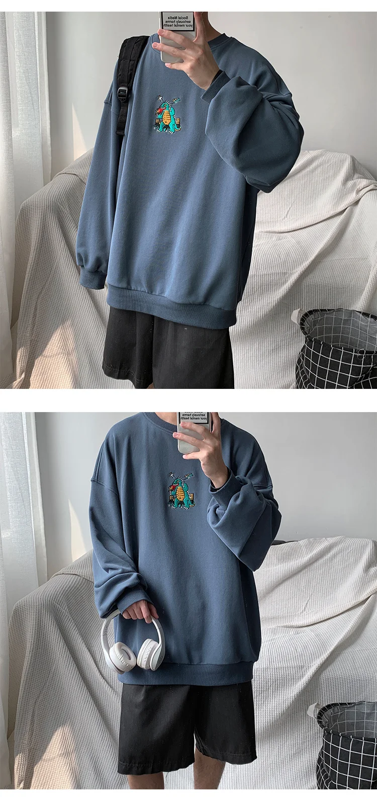 Privathinker, мужские осенние пуловеры с вышивкой динозавра, свитшоты, мужские толстовки с круглым вырезом, 3 цвета, Мужская модная Корейская толстовка