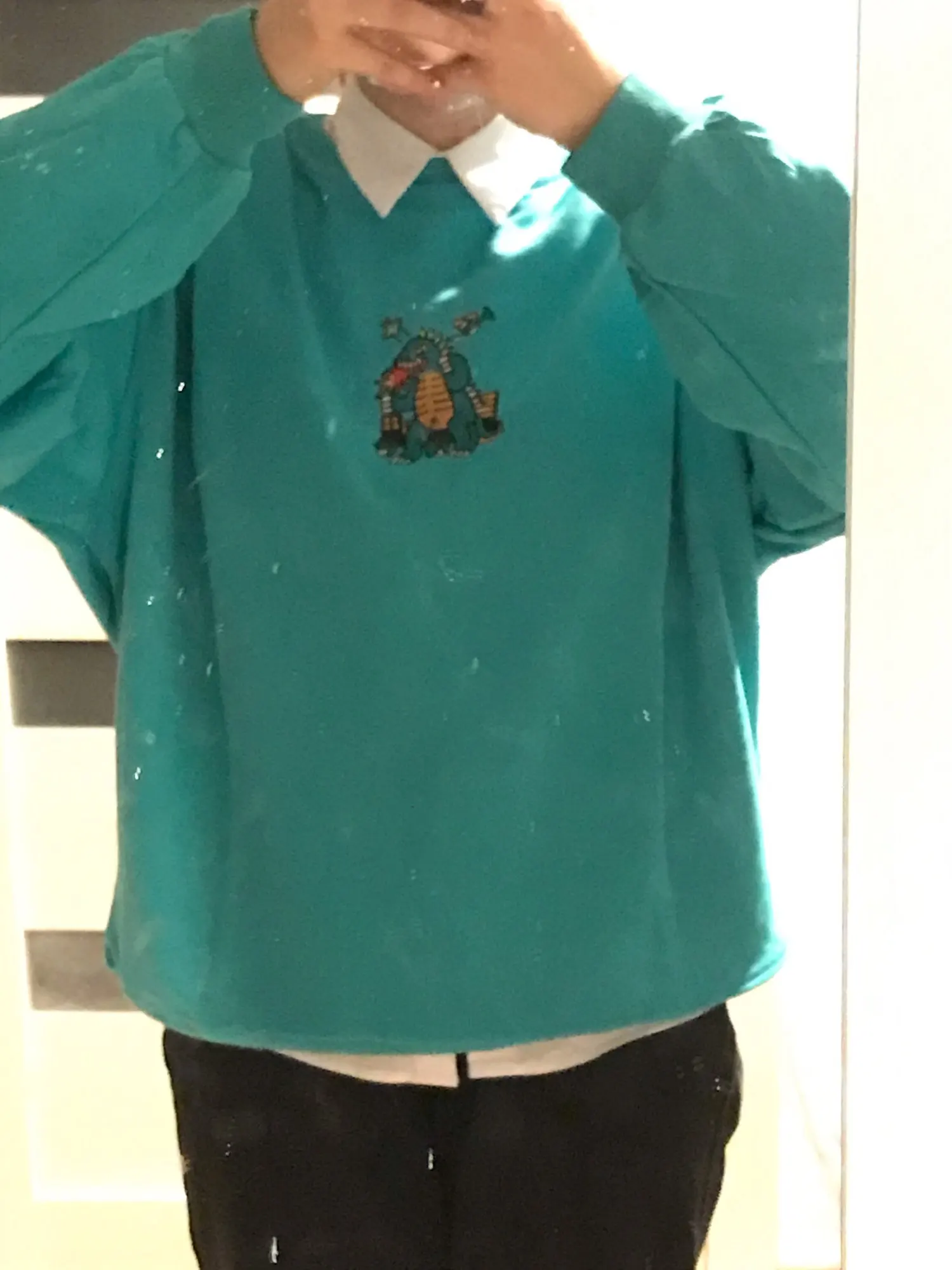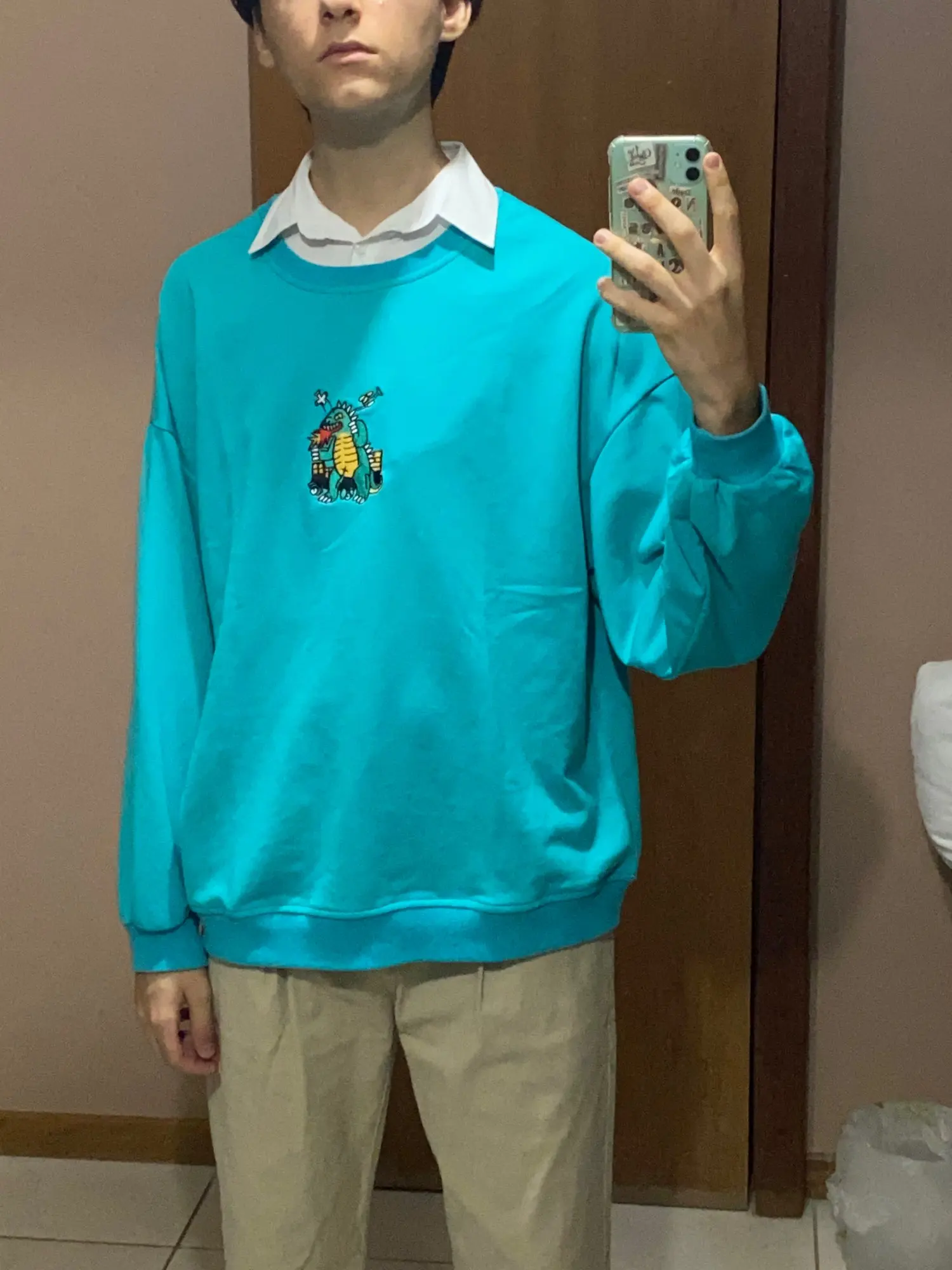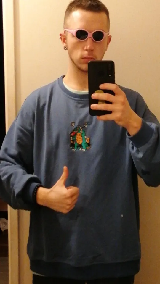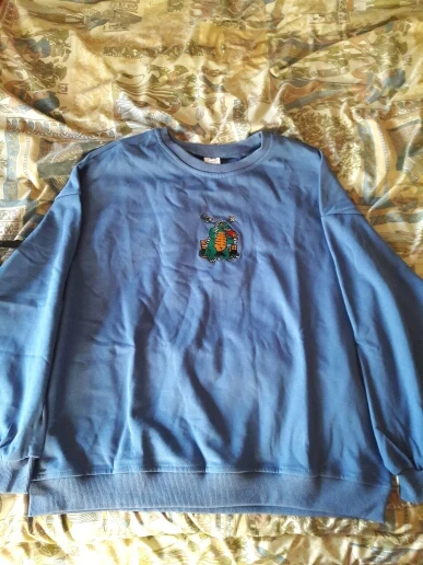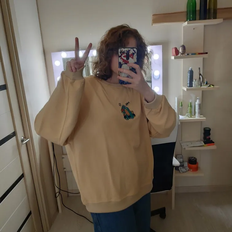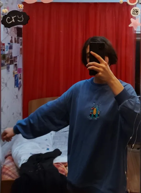 Супер-толстовка! Вышивка суперская. Он не тёплый, как кофта, внутри подкладки нет. Я на свой рост 175 ОГ 110, ОБ 110, ОТ 85 взяла 3XL и у меня прям супер оверсайз! Рукава длинные, и сама она очень длинная и объемная. Если вы большой человек и хотите оверсайз - берите смело