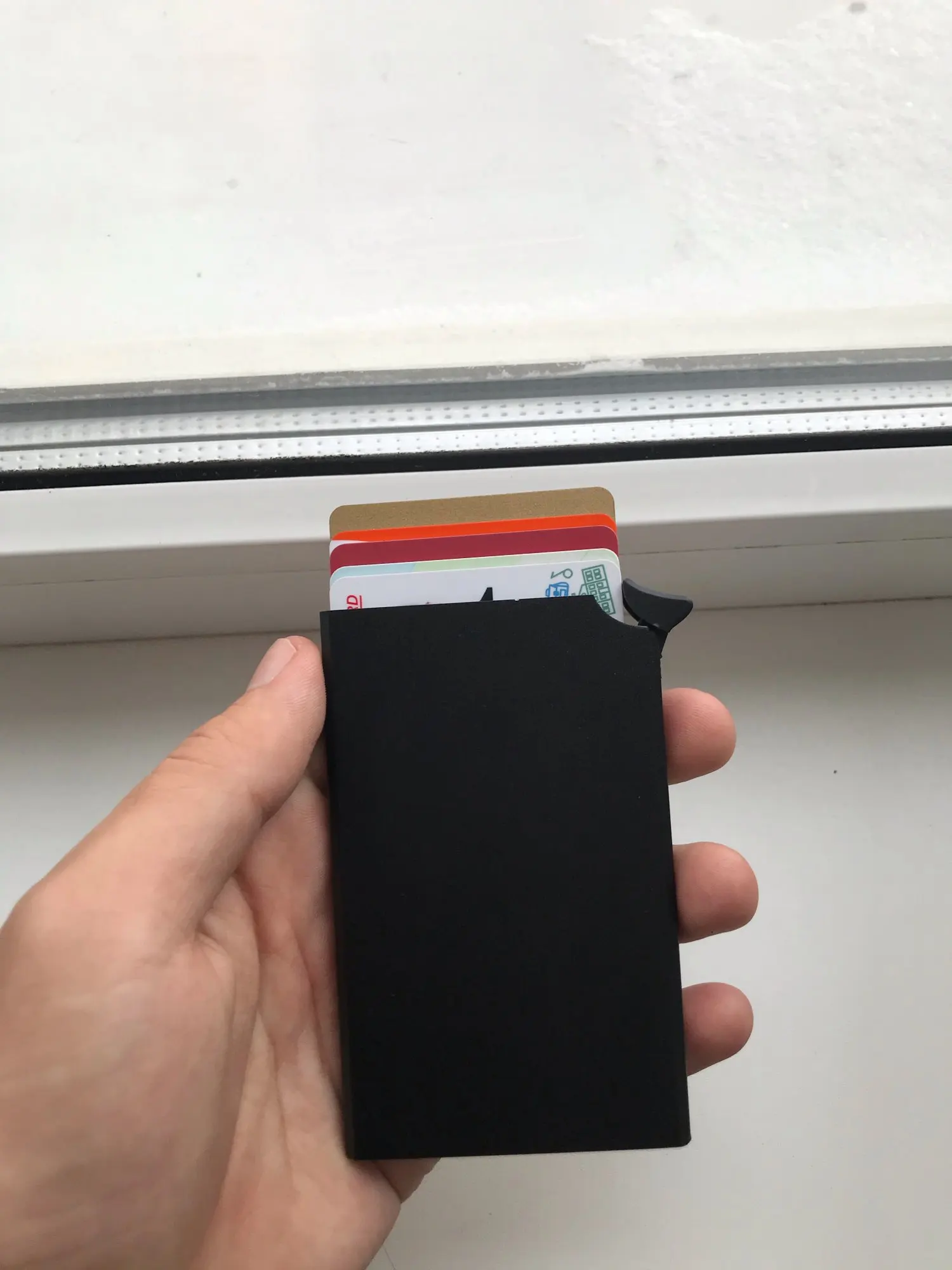 Товар пришëл быстро, без повреждений.Корпус металлический, сделан аккуратно.Влазит не больше 6 карточек.Одна, две, вылетают быстро.