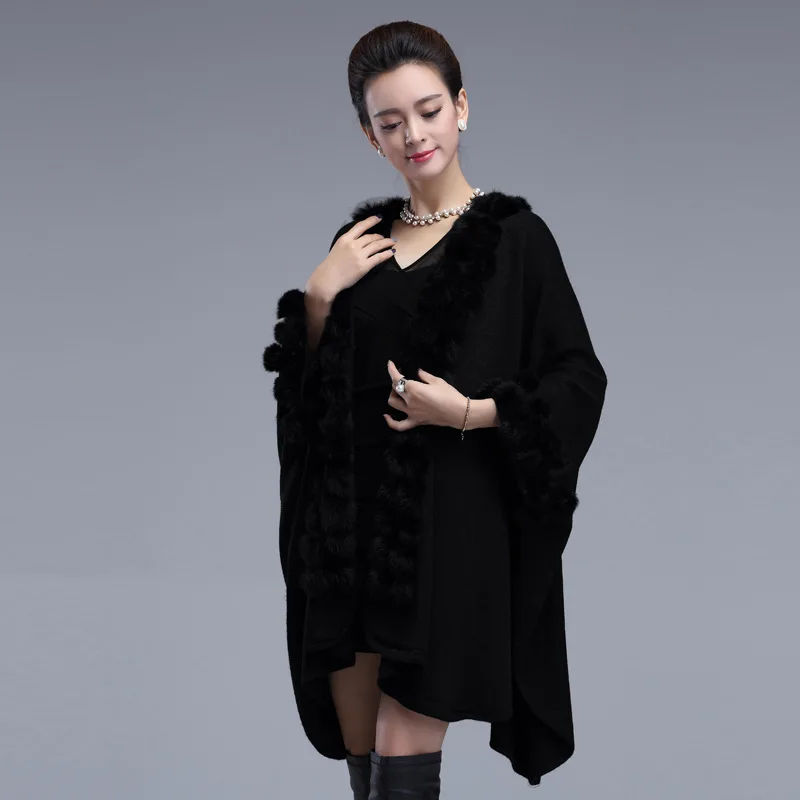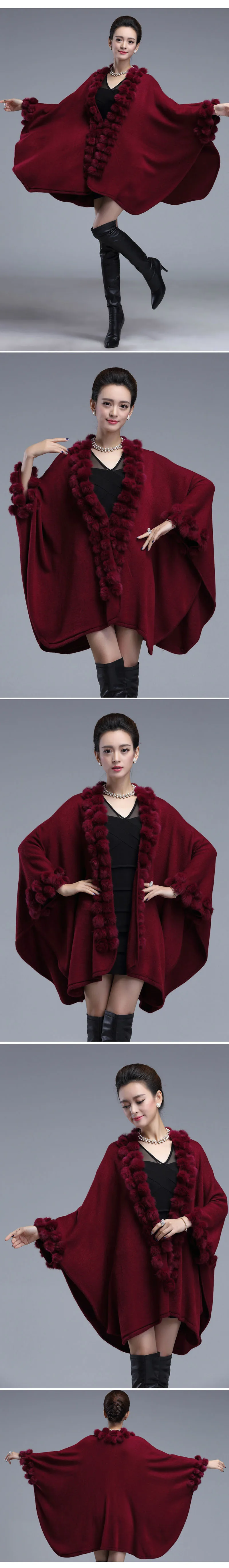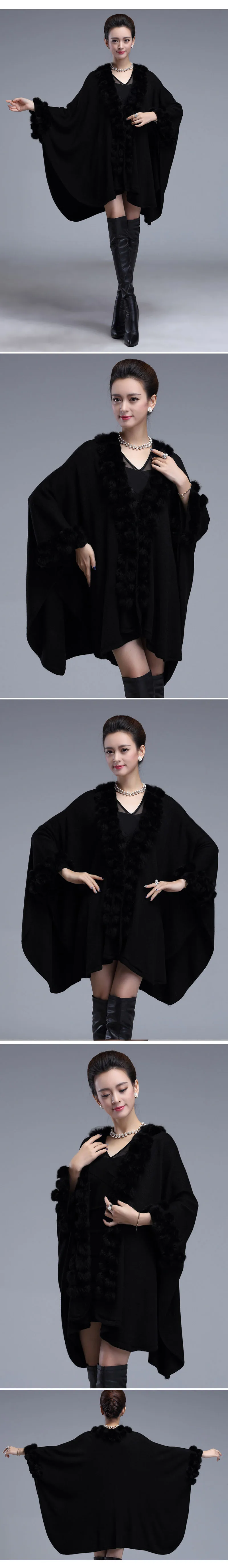 Женская шаль из искусственного лисьего меха, свободное пончо с длинным воротником, пальто-кардиган размера плюс, элегантная Вязаная Шаль из пашмины, зима 2019