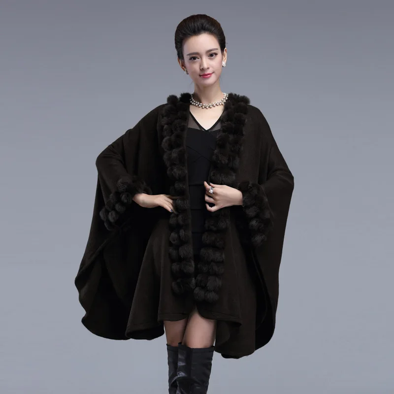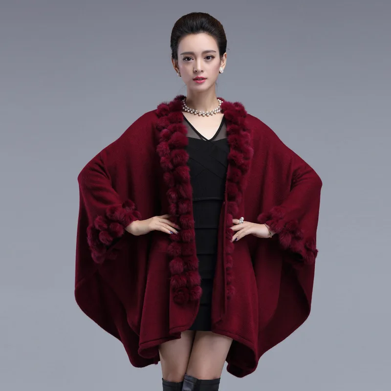 Женская длинная шаль из искусственного лисьего меха, свободное пончо с большим воротником, кардиган-накидка размера плюс, элегантная Вязаная Шаль, зима 2019