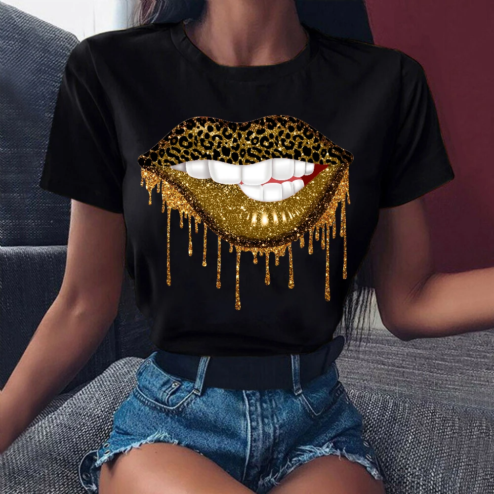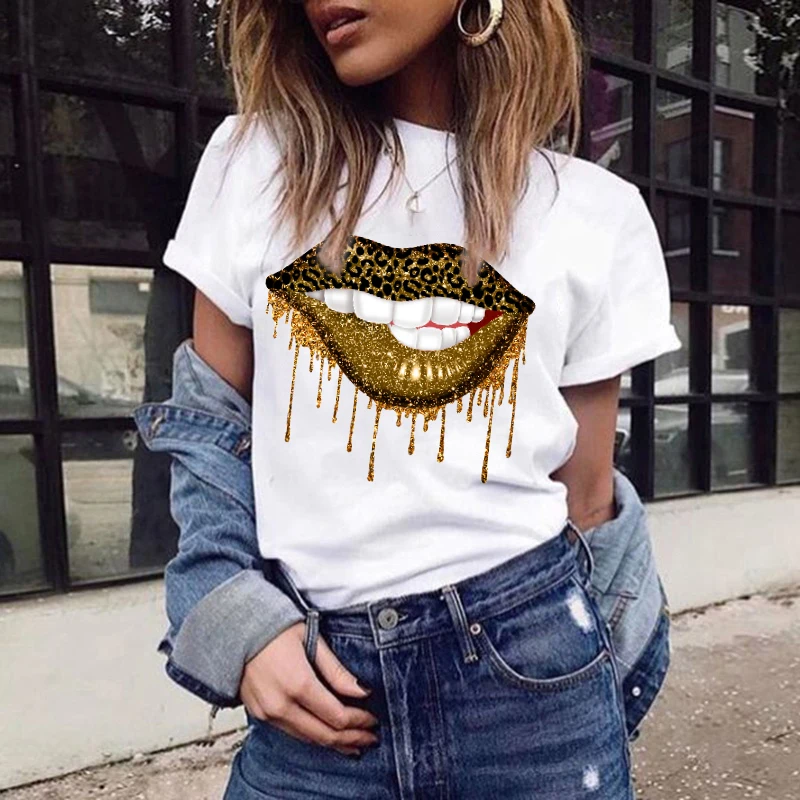 Женская футболка с круглым вырезом, коротким рукавом и леопардовым принтом