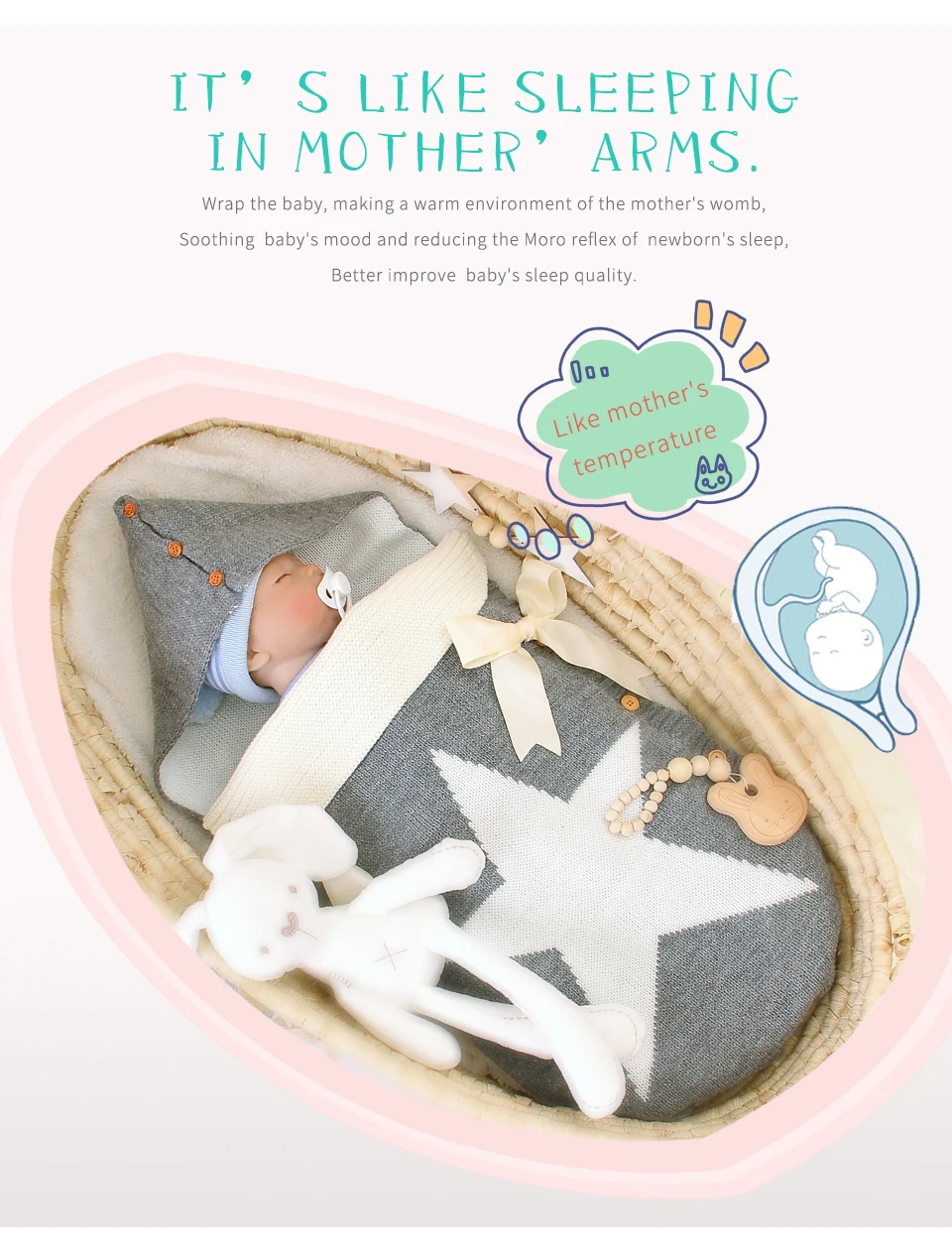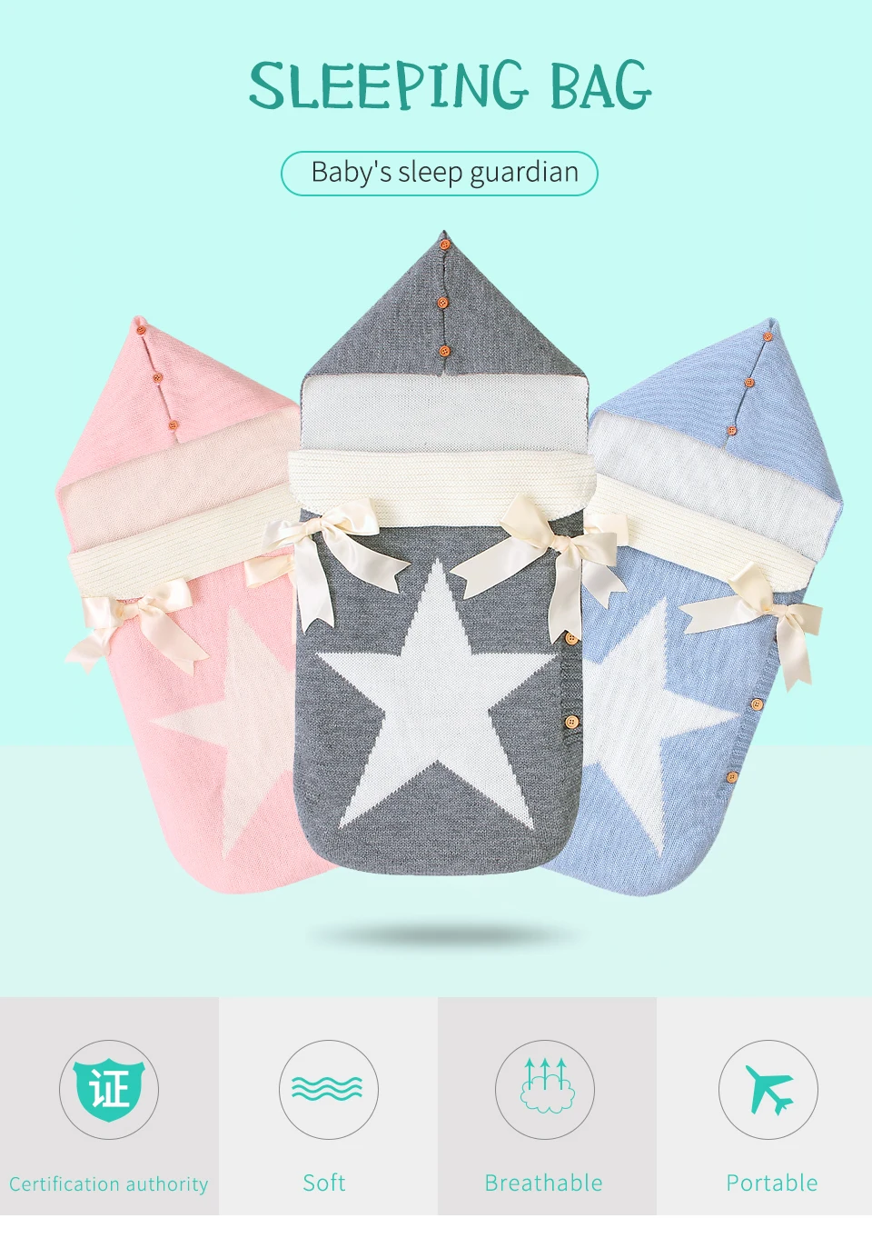 Детский спальный мешок, конверт для выписки, зимние спальные мешки для новорожденных, детские вязаные конверты для коляски с пятью звездами