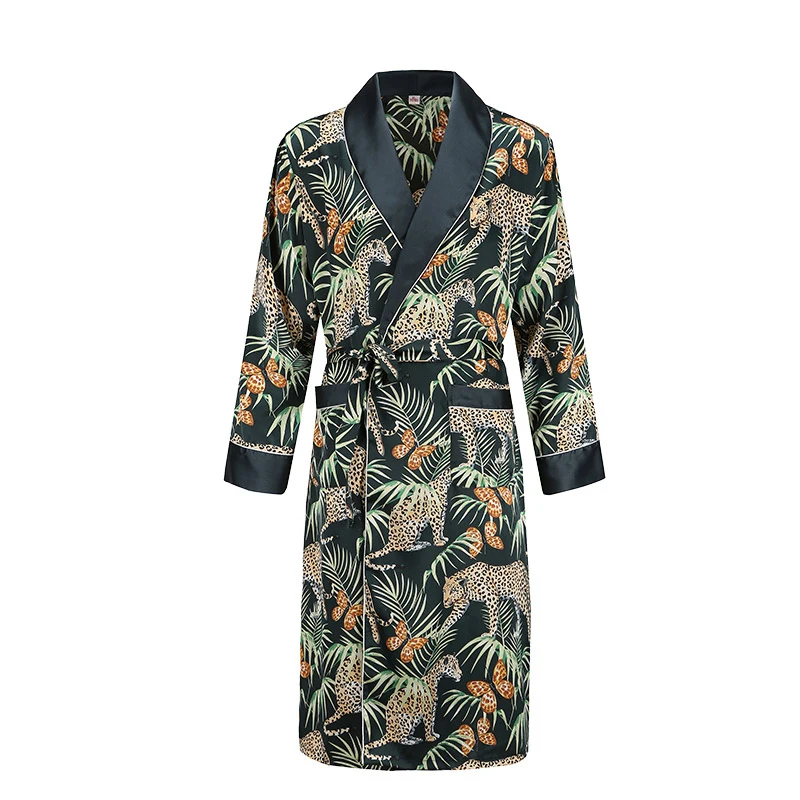 Мужской халат с длинным рукавом, Шелковый Атласный халат-кимоно, пижама с принтом дракона, Ночная сорочка