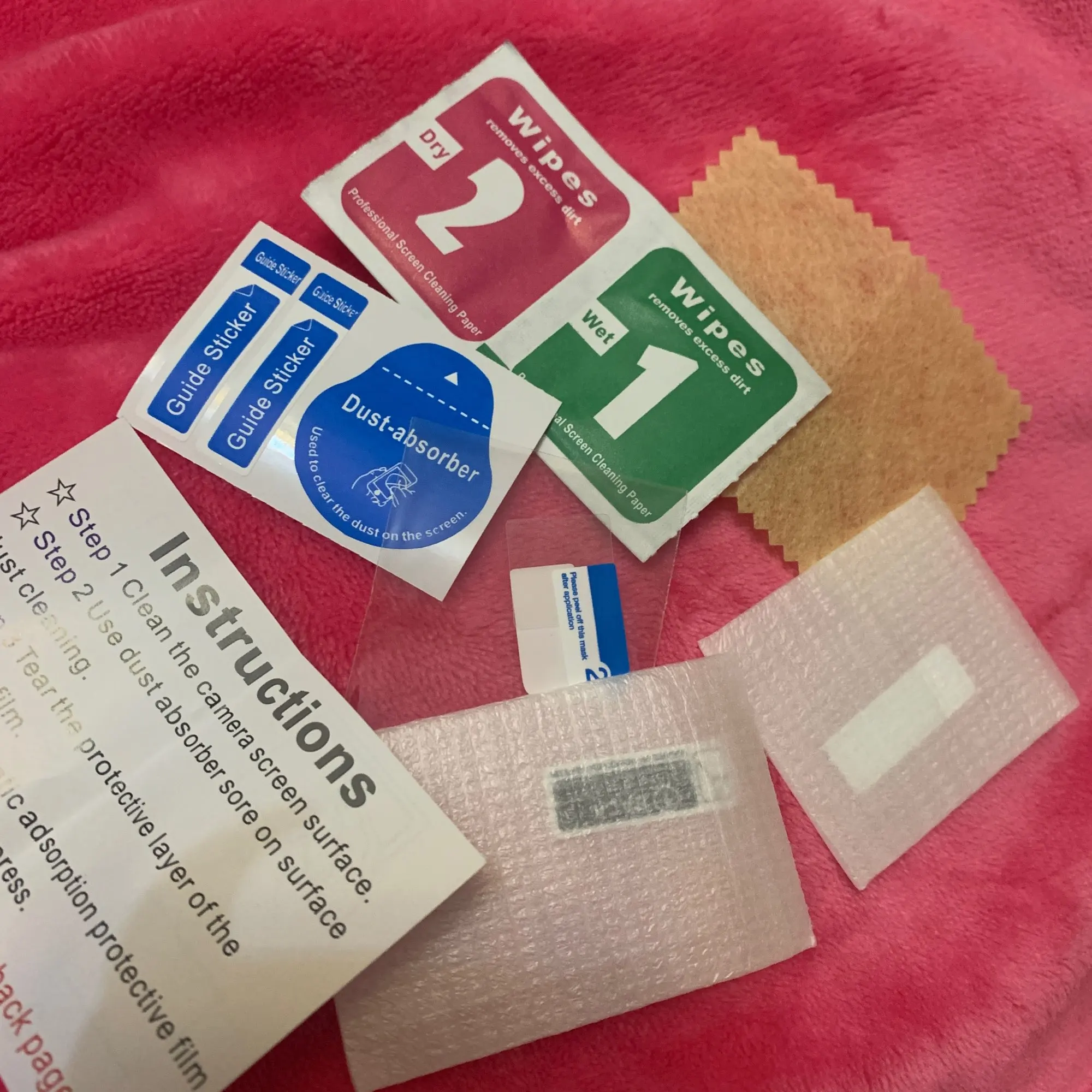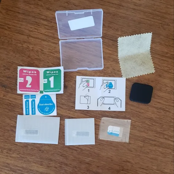 Три стекла: на линзу, задний и передний экраны. Все что нужно для установки в комплекте. Стекла толстые.