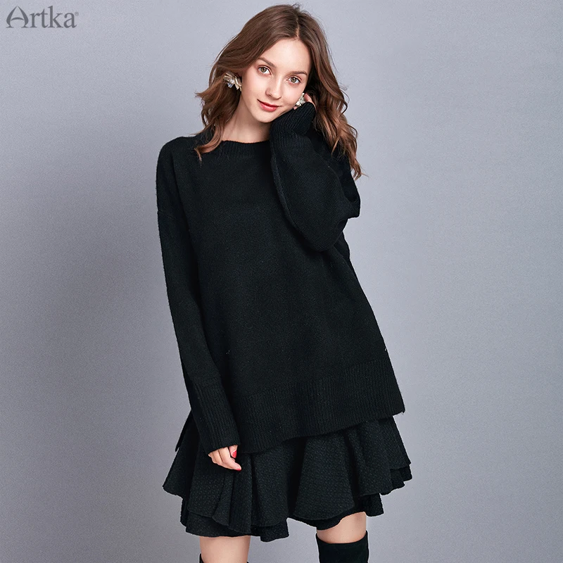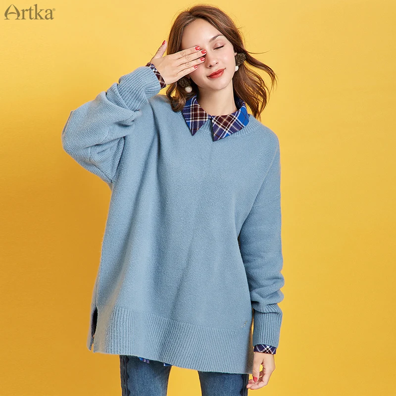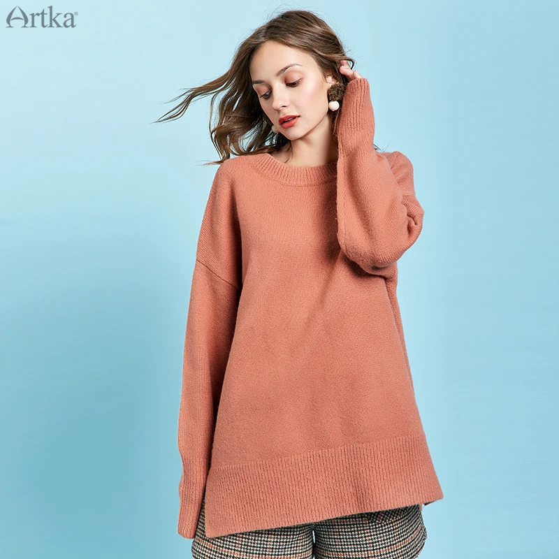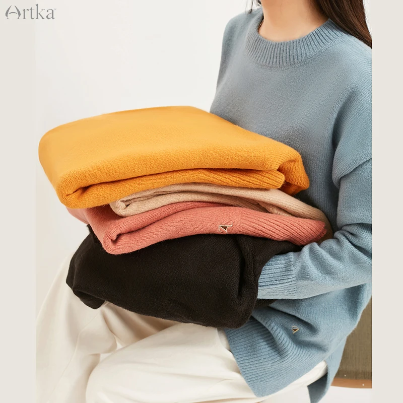 Женский шерстяной свитер ARTKA, Свободные шерстяные трикотажные свитера с круглым вырезом, пять цветов, на осень и зиму, YB11191D, 2019