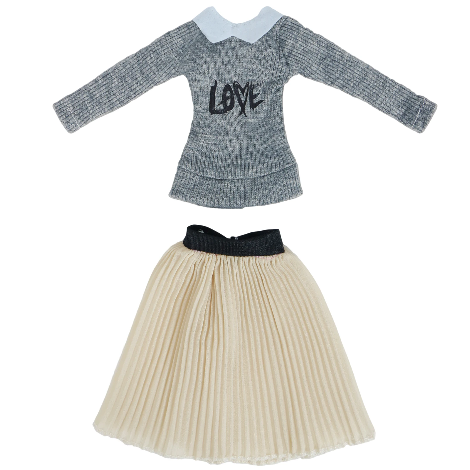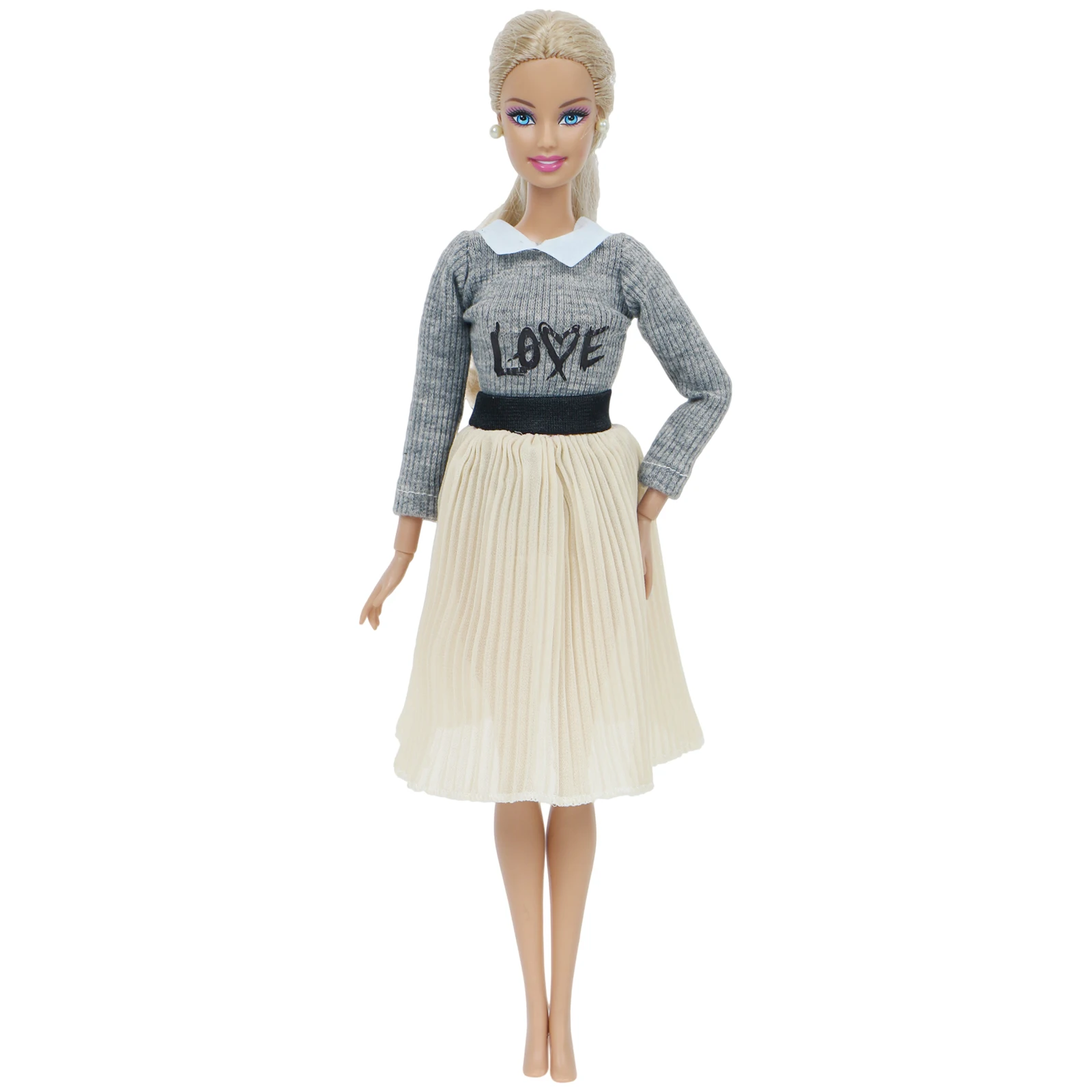 1 комплект, модная серая блузка, топ, длинная юбка, повседневная одежда, аксессуары, одежда для куклы Барби, детская игрушка