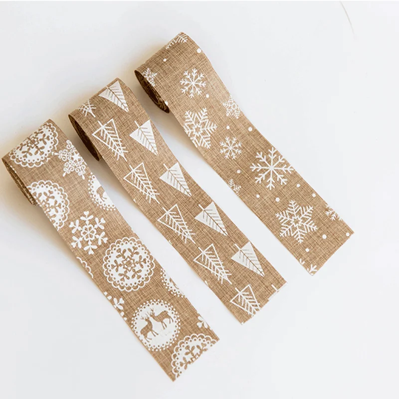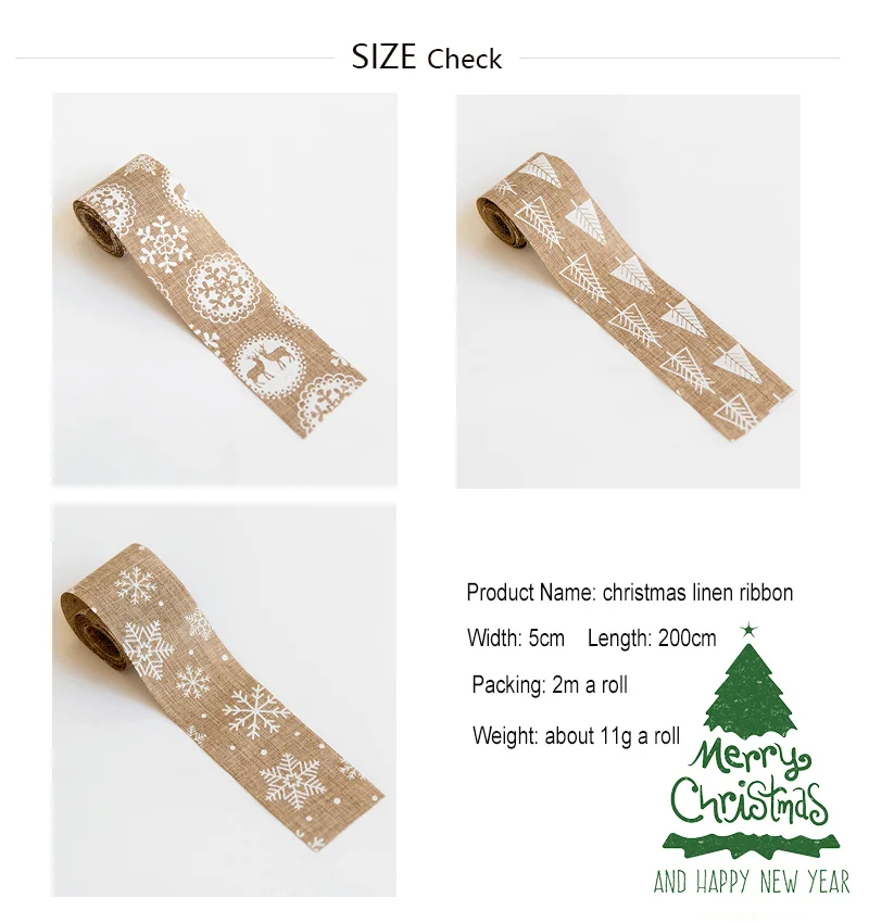 Высококачественная Рождественская льняная лента 2 м с бантом-бабочкой, Рождественская елка с изображением снежного лося, рождественские украшения, аксессуары