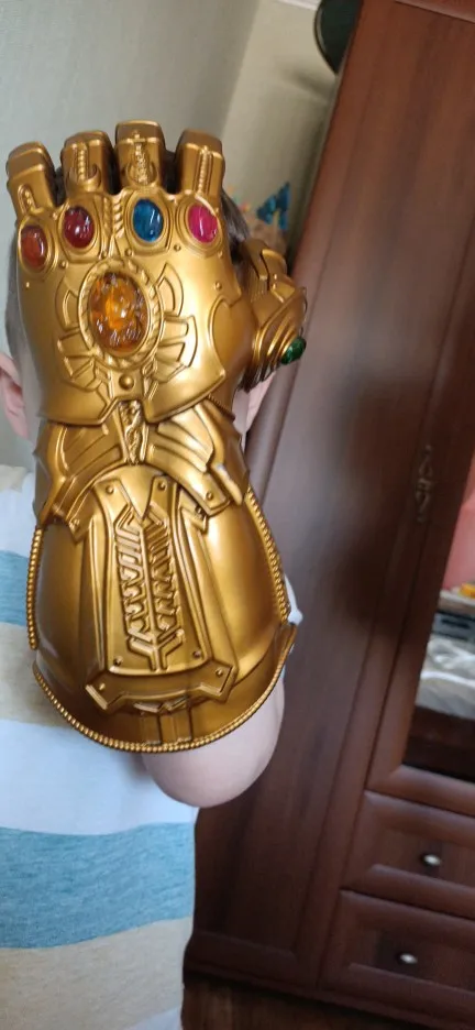Супер! Перчатка превзошла все ожидания! Ребёнок даже спать в ней хотел Отличное качество, очень плотная резина. Пальцами можно шевелить (это не пластмасс) Главное в этой перчатке (как говорит сын) - щёлкнуть пальцами Камни надёжно приклеены, безопасные (из пластика, гладкие)