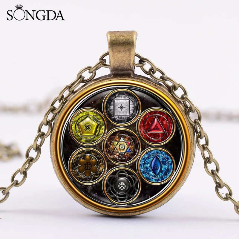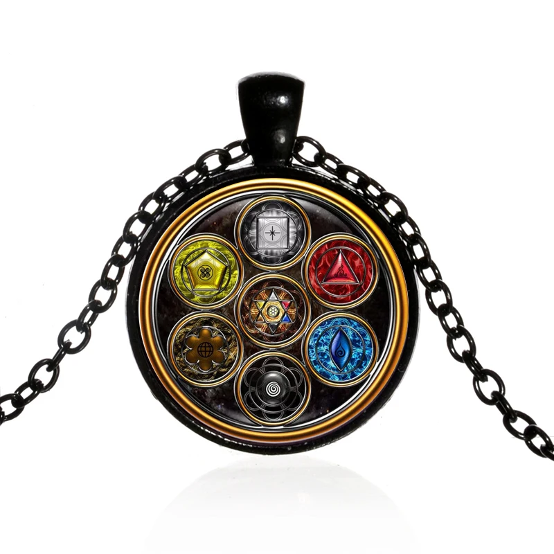 Новейшее ожерелье чакры Йога семь индийская чакра Шестигранная энергия камень искусство стекло кабошон кулон ожерелье Женщины Мужчины подарок
