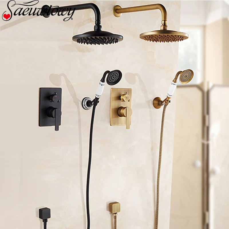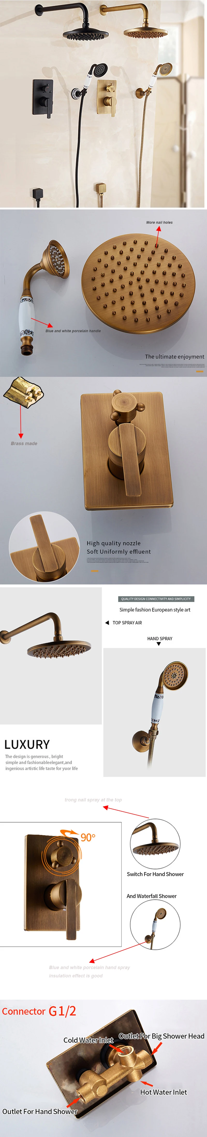 Скрытый латунный смеситель для душа для ванной комнаты Orb Настенный 8 'тропический насадка для душа сине-белый фарфоровый Ручной смеситель для душа