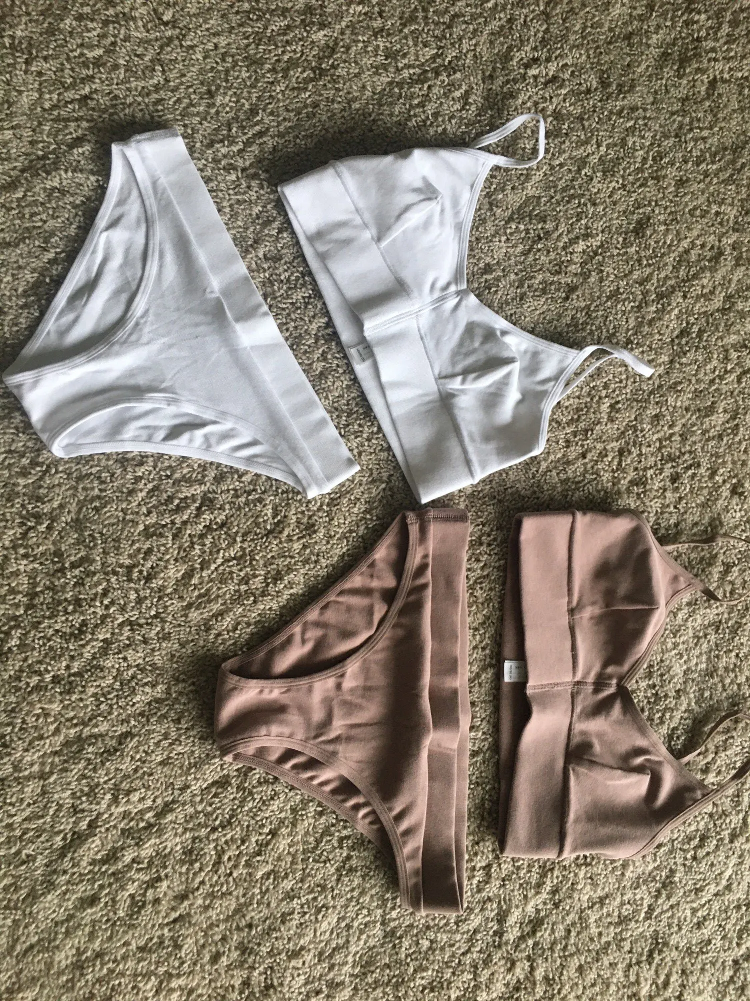 очень классные хлопковые комплекты! Уже есть один такой, только заказывала у другого продавца. Сейчас заказала серый и кирпичный, до этого был беж, самый крутой цвет бежевый. Нюдовый, оч красивый. Качество отличное. Продавец умничка, попросила положить трусы в одном комплекте м, в другом л. Все сделал как надо. На параметры ог82- от 60- об 90 село в самый раз, трусы отлично тянутся, модно м спокойно брать. Размер л на см примерно больше,на фото видно. В общем рекомендую!!!