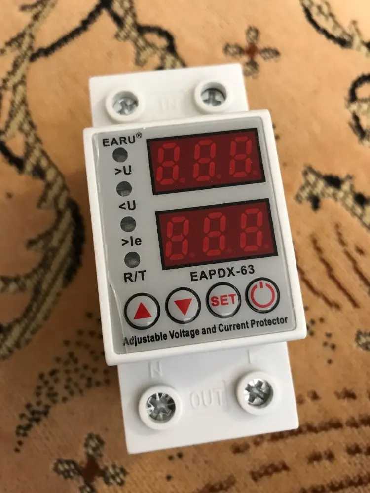5,4: нажмите кнопку «set», когда индикатор Тока загорится, настройте значение перегрузки по току, нажав кнопку «вверх» или «вниз», чтобы увеличить или уменьшить значение перегрузки по току, которое может быть 1A-63A (регулируемый) (по умолчанию: 40А).