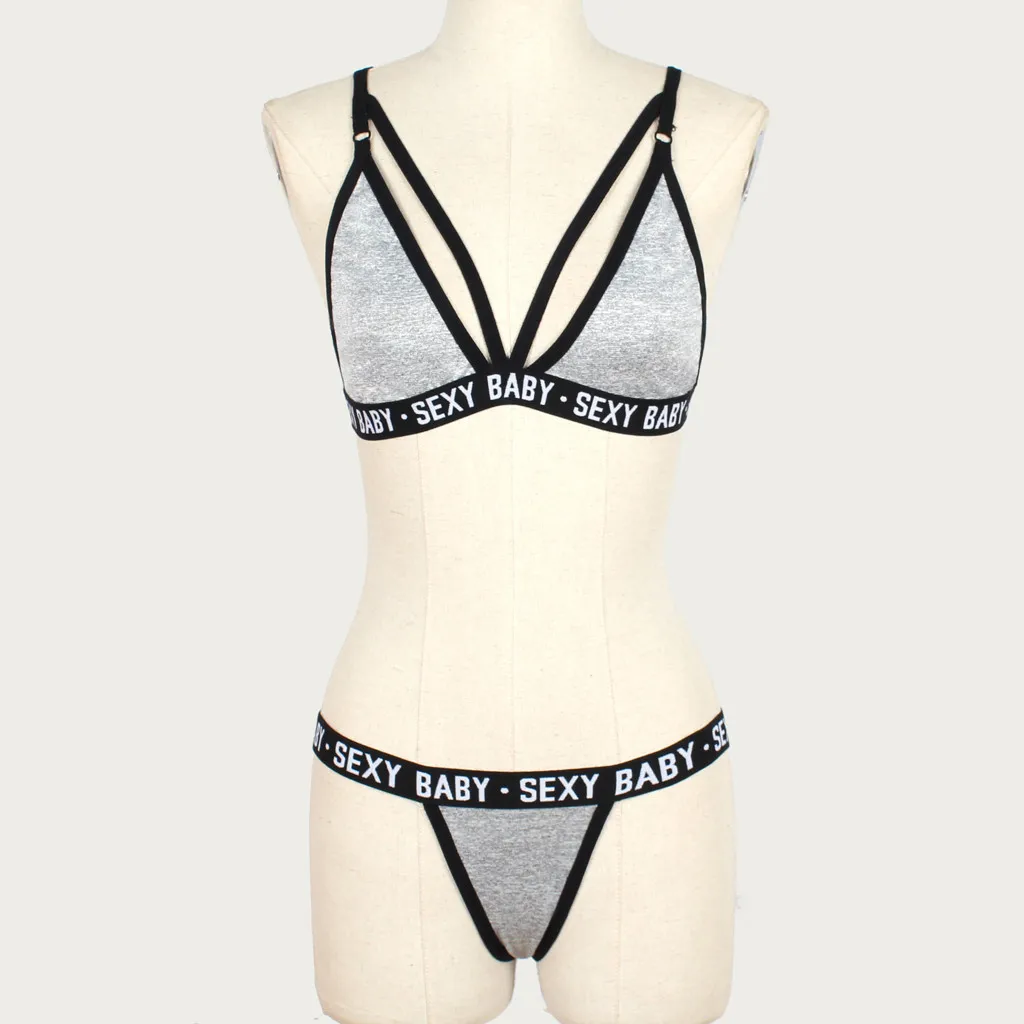 Модный женский комплект нижнего белья с буквенным принтом в стиле пэчворк