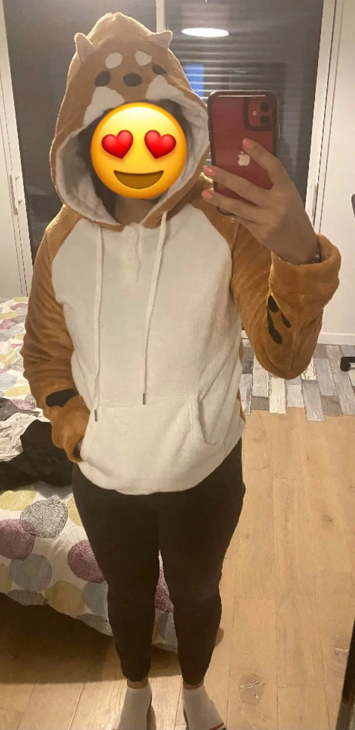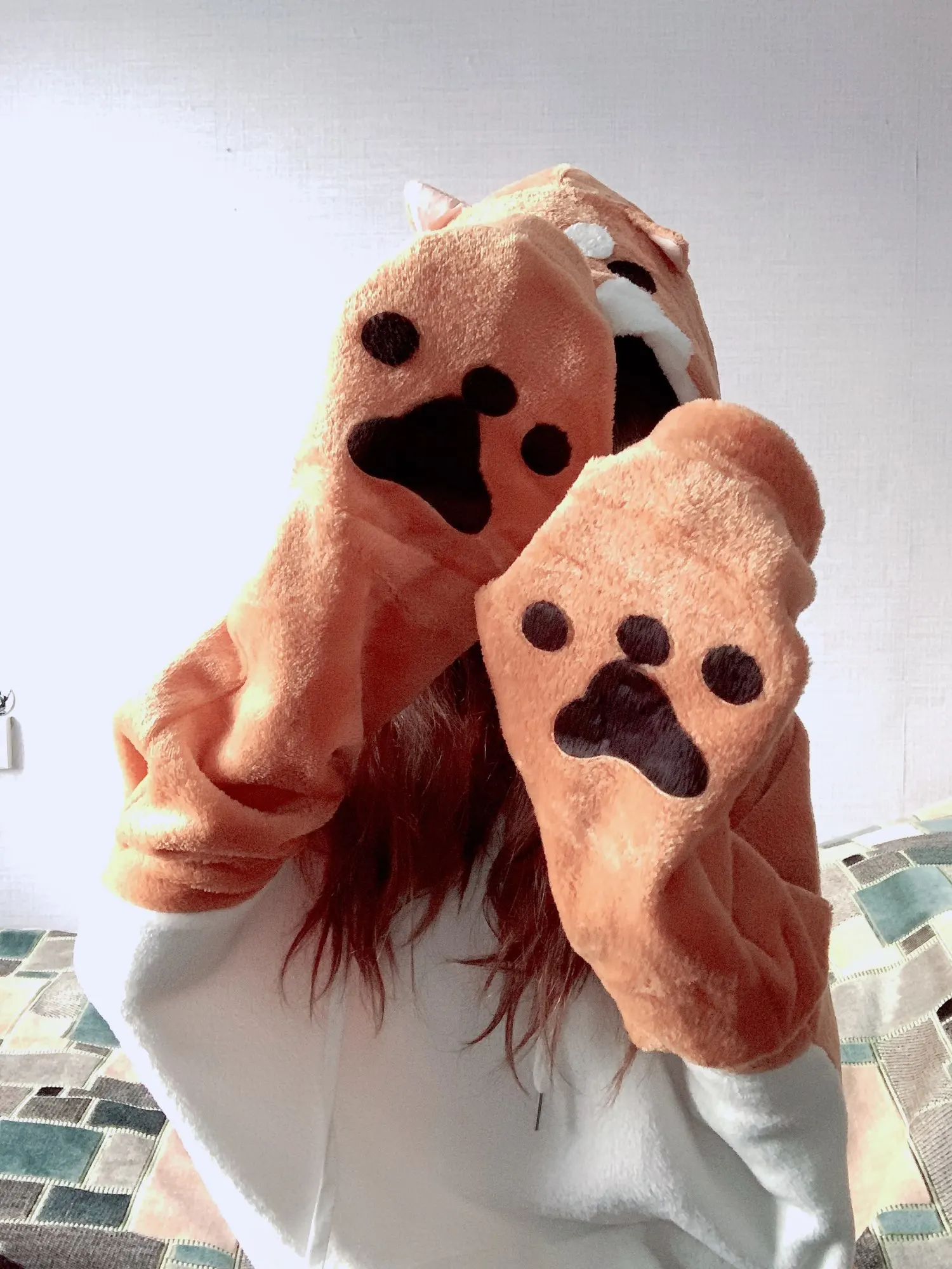 Очень хорошая худи, тёплая и приятная на ощупь. Прошита хорошо. Внутри тоже очень мягкая, носить приятно. Конечно, маломерит, поэтому я на свой привычный S взяла XL - село идеально. Друзьям и знакомым тоже понравилось, так что это ещё и прекрасный способ выделиться из толпы :) Мордочка и хвостик немного отличаются от описания, но это нестрашно.