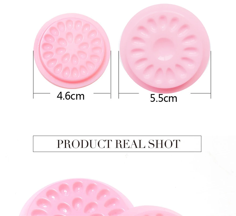 Наименование товара: держатель для клея для ресницФорма: форма цветкаМатериал: санитарный пластикДиаметр: 4,6 см, 5,5 смДва вида упаковки,