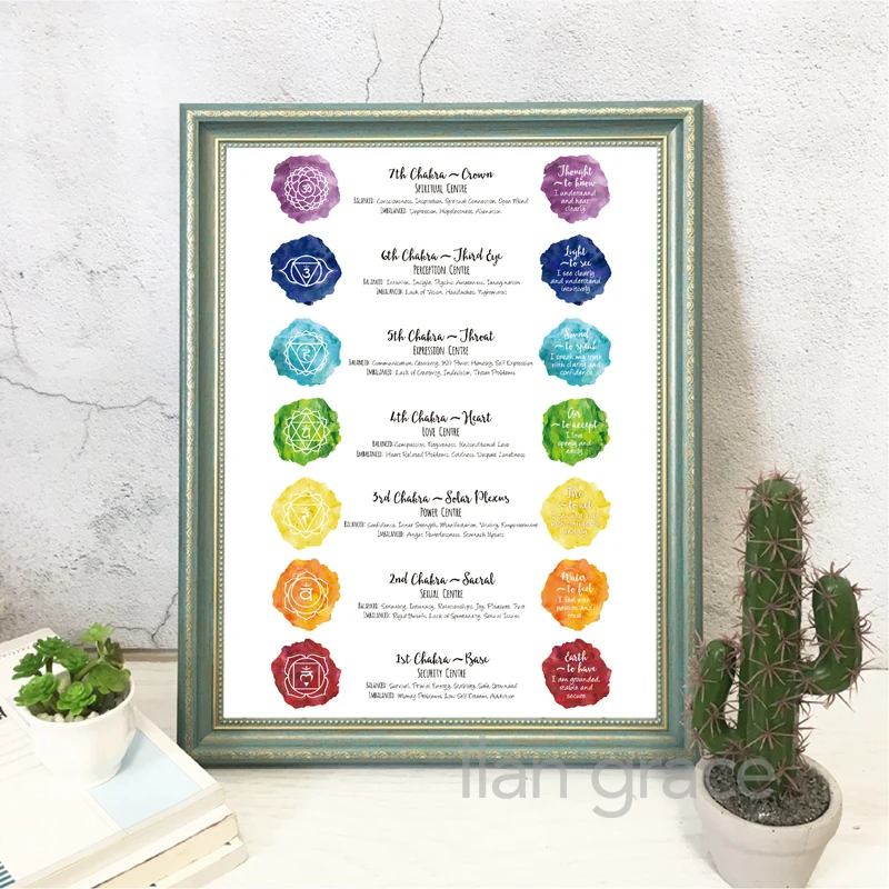 Чакра Художественная печать семь шаркас плакат домашний Настенный декор, чакра Йога Медитация акварельная картина на холсте картина украшение
