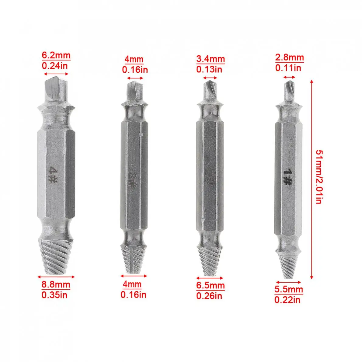 4 шт.лот S2 экстрактор винтов из легированной стали сверло инструменты с шестигранной ручкой и двойной стороной для сломанногоповрежденного болта шпилька