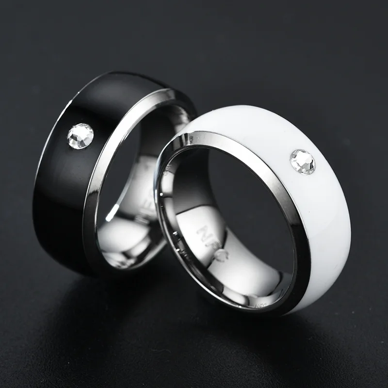 Кольцо с NFC для телефона для мужчин и женщин, классическое Ювелирное Украшение, черно-белое, с меткой из нержавеющей стали