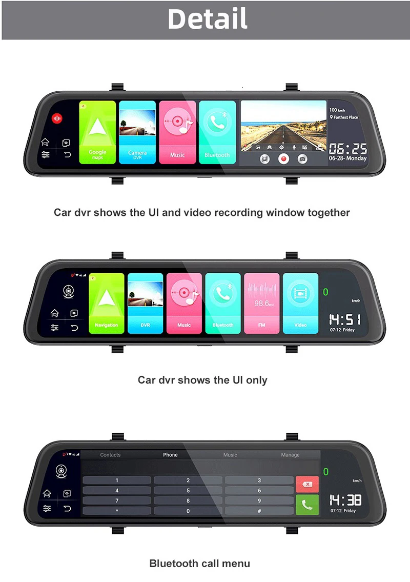 Благодаря bluetooth hands-free, После сопряжения bluetooth между dvr и смартфоном, вы можете совершать и принимать звонки непосредственно с самого зеркала dvr со встроенным микрофоном и динамиком.Вы также можете воспроизводить музыку через Bluetooth.