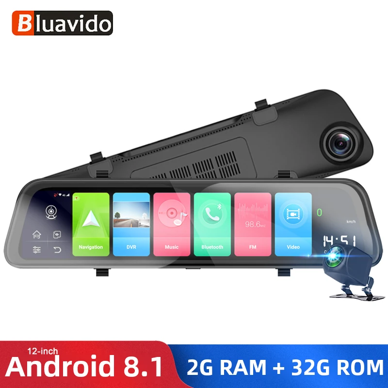 Зеркало-видеорегистратор Bluavido, Автомобильный регистратор с камерой заднего вида, 12 "IPS, 4G, Android 8,1, GPS, 2 Гб ОЗУ, ADAS, Wi-Fi, Bluetooth, FHD 1080P