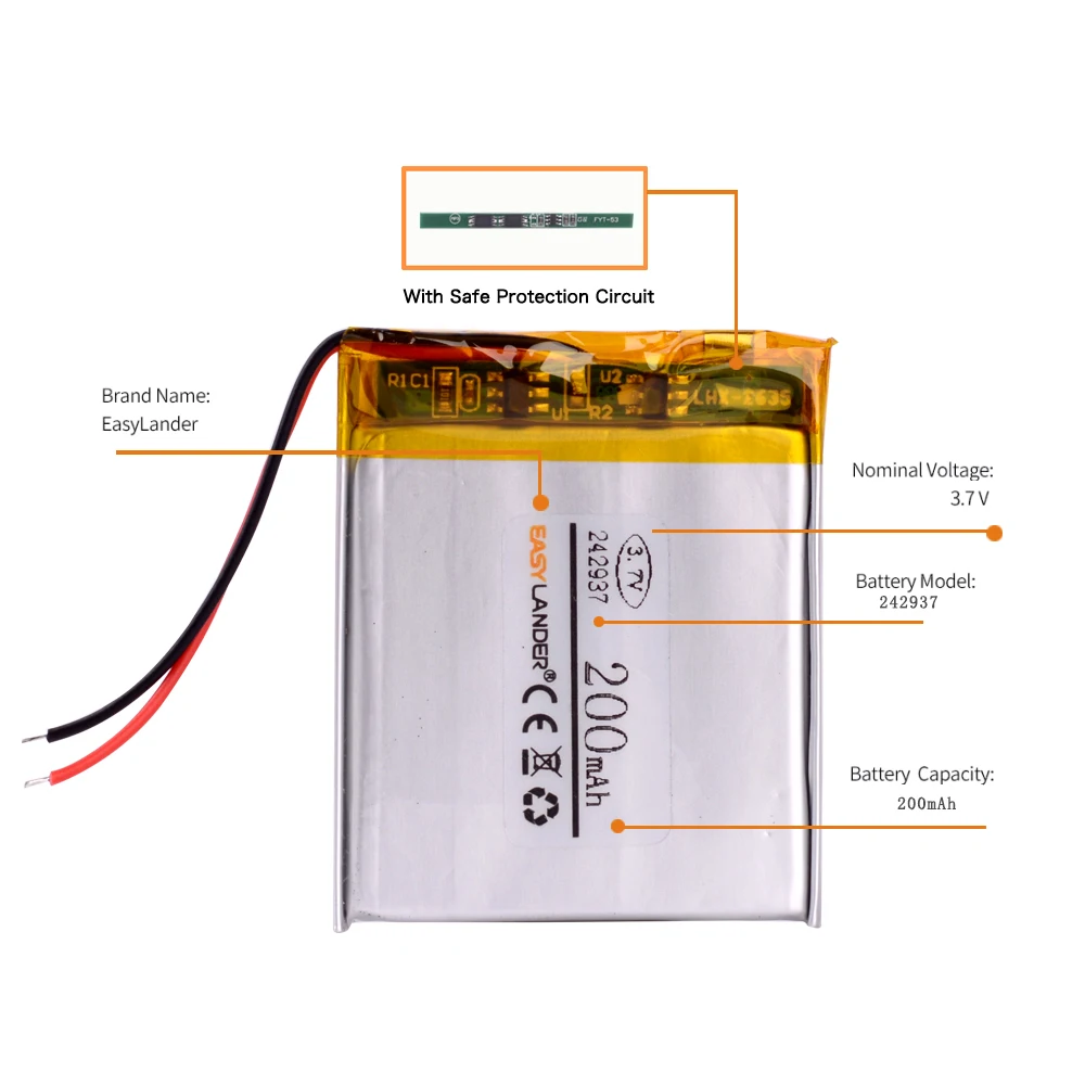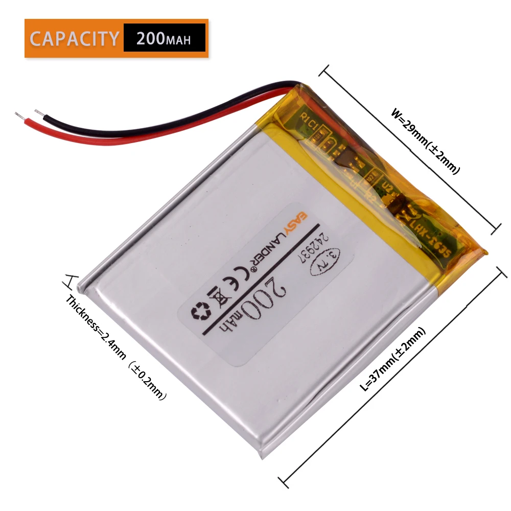 Сменный аккумулятор для mp4-плеера 242937, 3,7 в, 200 мА ч, литий-полимерный аккумулятор для планшета 253035