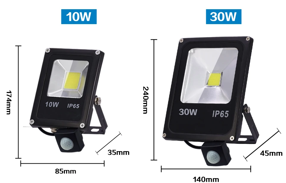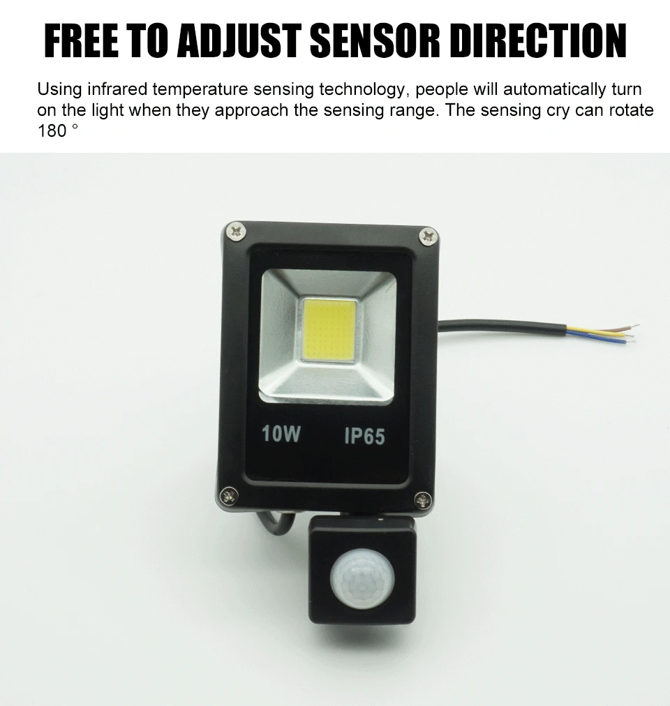 Светодиодный прожектор, водонепроницаемый уличный точесветильник ильник с датчиком движения, 220 В, 50 Вт, 30 Вт, 10 Вт, IP65